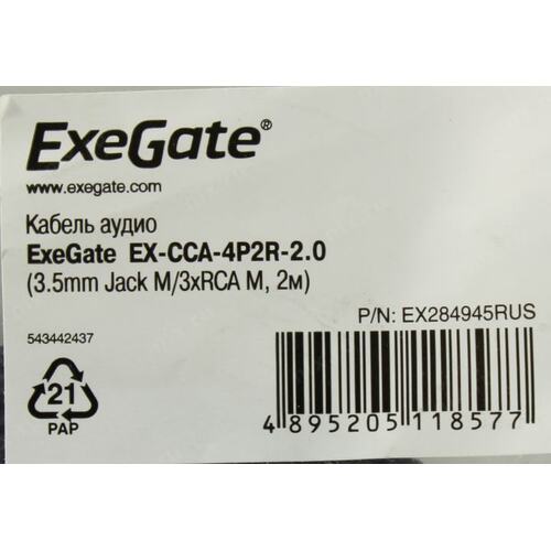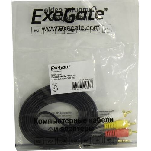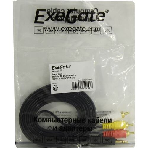 Кабели Exegate EX284945RUS Кабель аудио ExeGate EX-CCA-4P2R-2.0 (3.5mm Jack M/3xRCA M, 2м)
