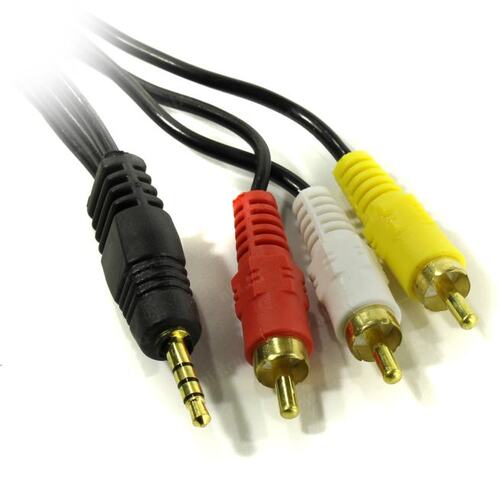 Кабель для подключения видеокамер и прочих источников видеосигнала с комбинированным аудио/видео разъемом миниджек 3.5 мм к видео/аудиоаппаратуре с разъемами RCA.