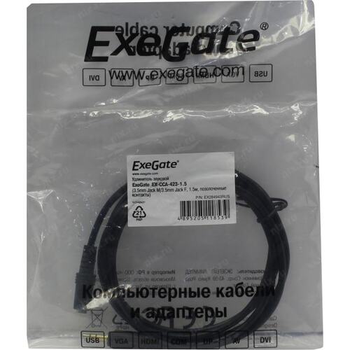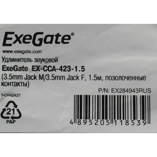Кабели Exegate EX284943RUS Удлинитель звуковой ExeGate EX-CCA-423-1.5 (3.5mm Jack M/3.5mm Jack F, 1,5м, позолоченные контакты)