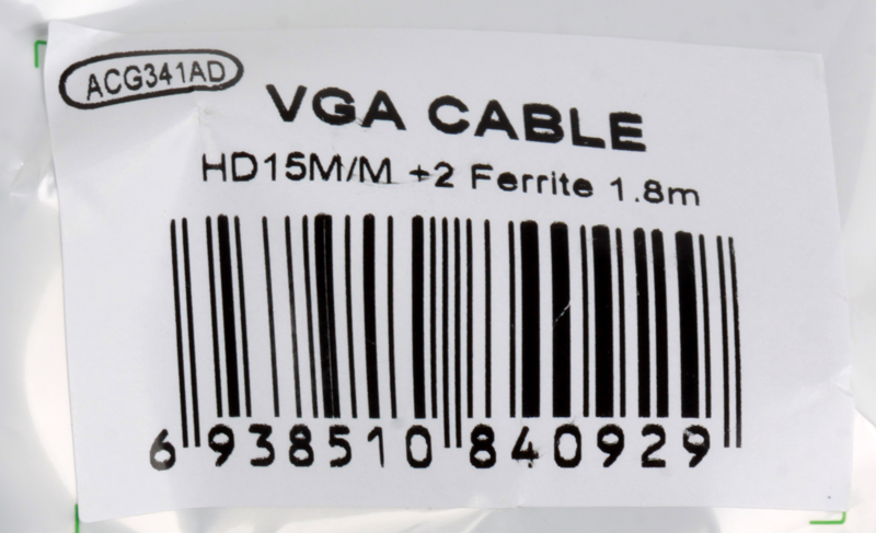 Кабели Aopen/Qust (ACG341AD-1.8M) Кабель монитор-SVGA card (15M-15M) 1,8м 2 фильтра [6938510840929]