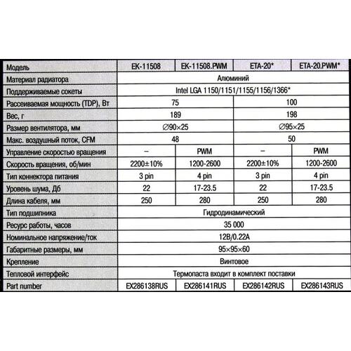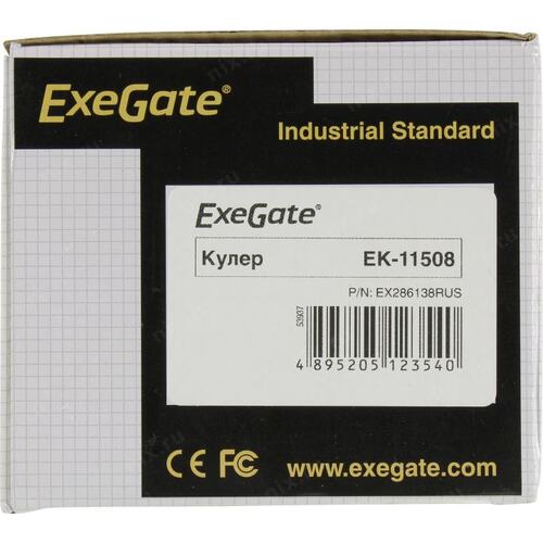 Вентиляторы Exegate EX286138RUS Кулер ExeGate EK-11508 (Al, LGA1150/1151/1155/1156/1200, TDP 75W, Fan 90mm, 2200RPM, Hydro bearing, 3pin, 22db, 285г, с термопастой, на винтах, Retail color box)