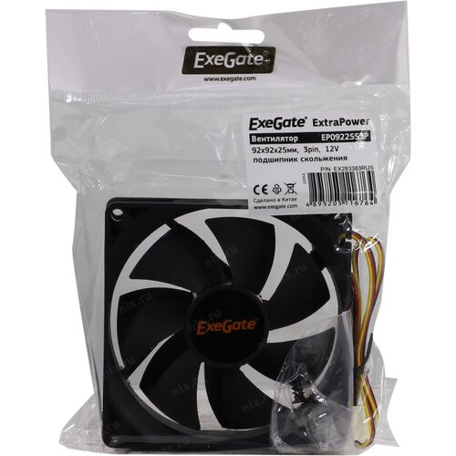 Вентиляторы Exegate EX283383RUS Вентилятор ExeGate ExtraPower EP09225S3P, 92x92x25 мм, подшипник скольжения, 3pin, 2200RPM, 24dBA | НИКС Екатеринбург