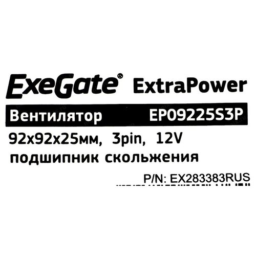 Вентиляторы Exegate EX283383RUS Вентилятор ExeGate ExtraPower EP09225S3P, 92x92x25 мм, подшипник скольжения, 3pin, 2200RPM, 24dBA