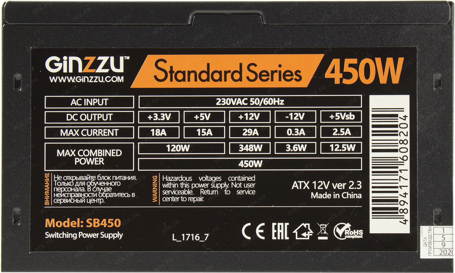 Блок питания Ginzzu SB450 12CM [SB45012CM]