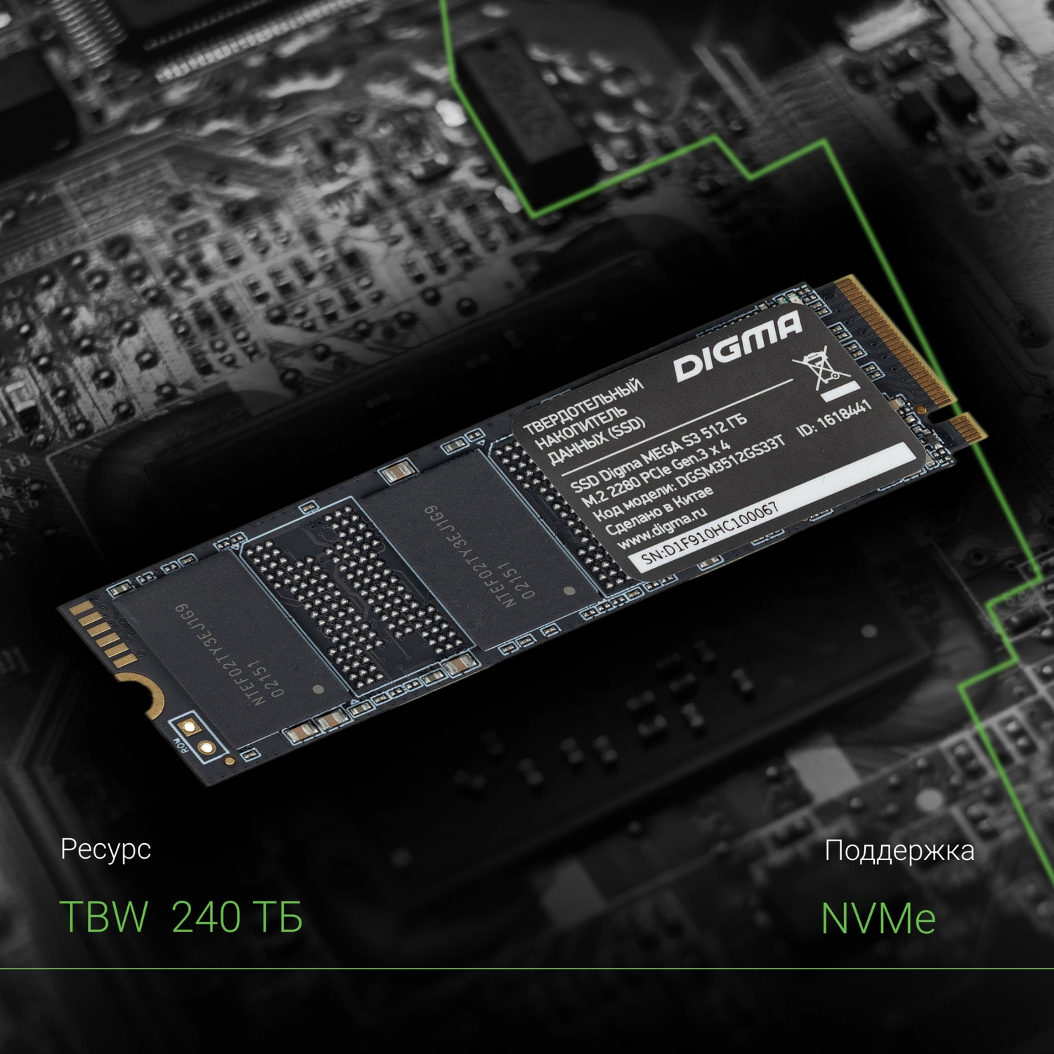 Твердотельный накопитель GS Nanotech SSD GS027 512ГБ PCIe 3 x4, M.2 2280, 3D TLC, до R3200/