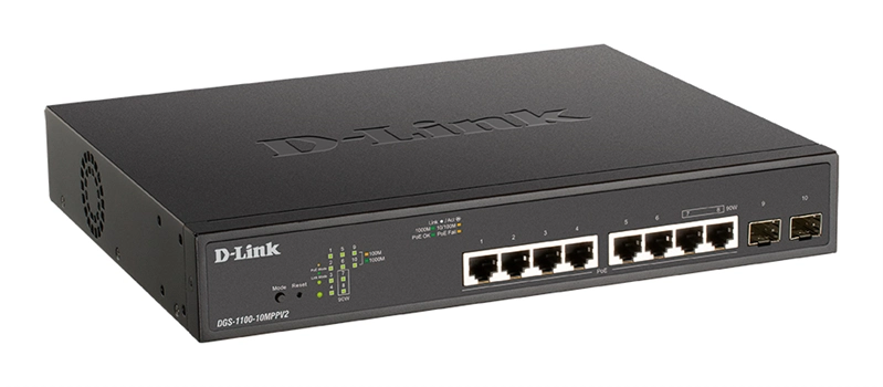 Коммутатор D-Link Настраиваемый L2 PoE-коммутатор, 8х1000Base-T PoE (2 порта 802.3bt 90 Вт), 2x1000Base-X SFP, PoE-бюджет 242 Вт <DGS-1100-10MPPV2/A3A> | НИКС Екатеринбург