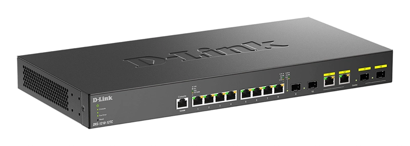 Сетевое оборудование D-Link SMB D-Link DXS-1210-12TC/B1A PROJ Настраиваемый L2+ коммутатор с 8 портами 10GBase-T, 2 портами 10GBase-X SFP+ и 2 комбо-портами 10GBase-T/SFP+ | НИКС Екатеринбург