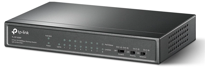 Коммутатор TP-Link TL-SF1009P, 9-Port 10/100 Mbps Desktop Switch with 8-Port PoE+, 65 W, 250m | НИКС Екатеринбург