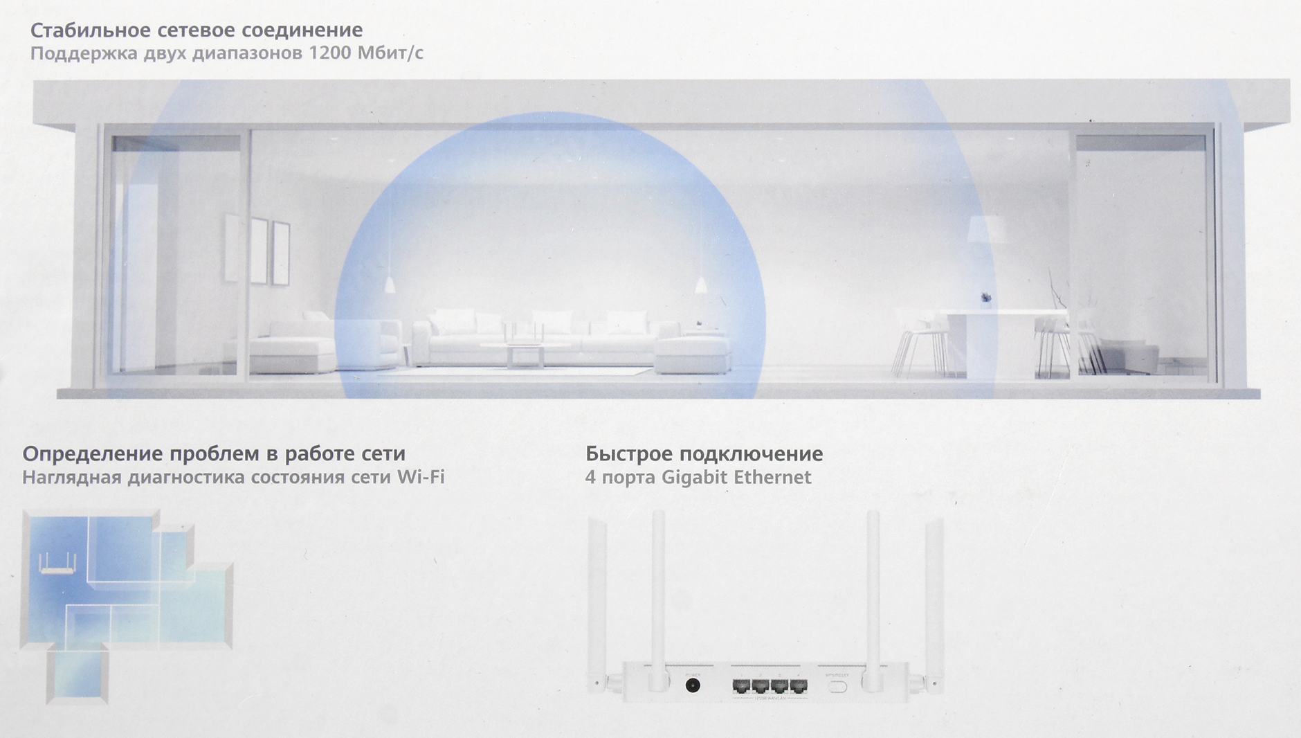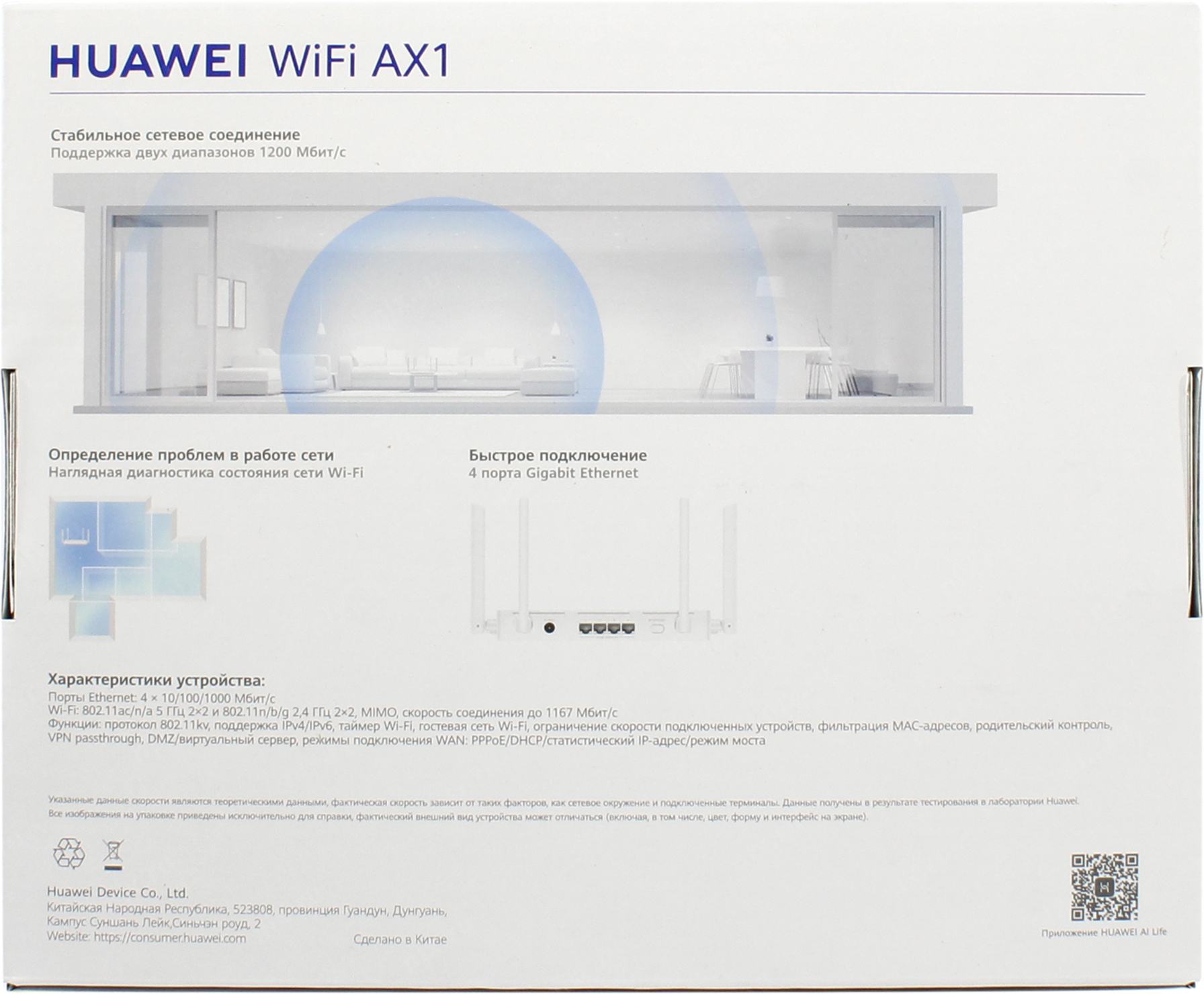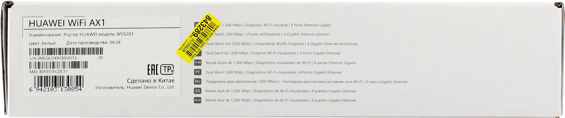 Сетевое оборудование HUAWEI 53030BYV WS5203-20 WiFi AX1 Маршрутизатор WiFi 5 AC1200, 4* LAN/WAN ports GE, WHITE