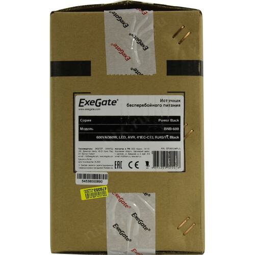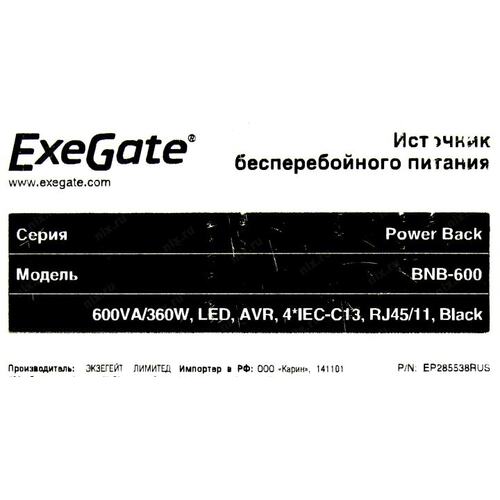 ИБП Exegate EP285538RUS ИБП ExeGate Power Back BNB-600.LED.AVR.C13.RJ <600VA/360W, LED, AVR,4*IEC-C13, RJ45/11, Black>