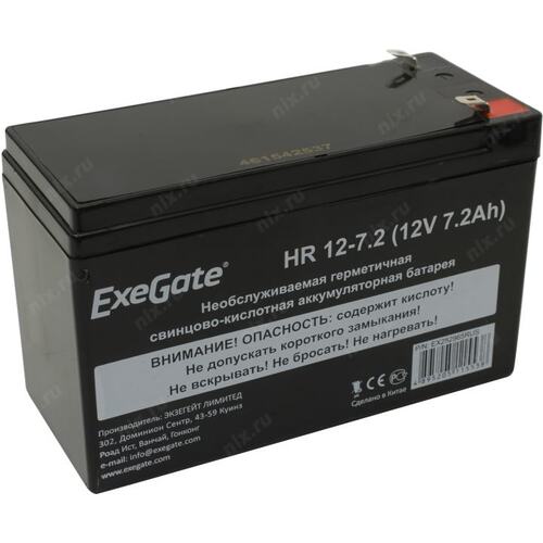 1 аккумулятор 12В, 7.2 Ач. Свинцово-кислотные, герметичные, не требуют обслуживания.