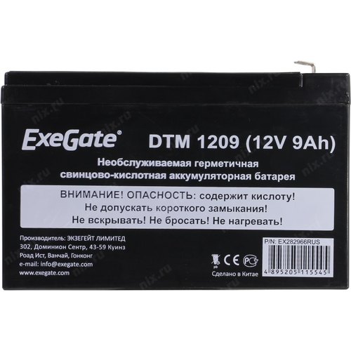 Батареи Exegate EX282966RUS Аккумуляторная батарея DTM 1209 (12V 9Ah, клеммы F2) | НИКС Екатеринбург