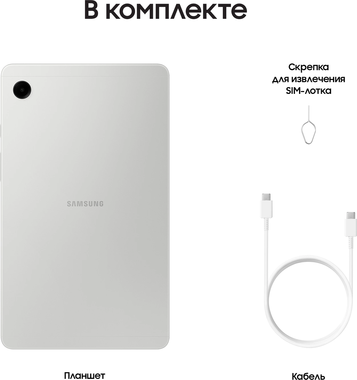Планшет Samsung Galaxy Tab A11 BSM-X130 G99 (2.2) 8C RAM4Gb ROM64Gb 8.7" TFT 1340x800 Android 15 серебристый 8Mpix 5Mpix BT WiFi microSD 2Tb 5100mAh 7hr SM-X130NZSACAU