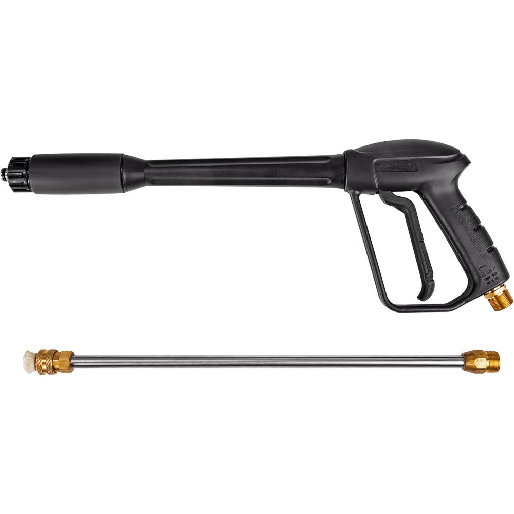 Пистолет-распылитель (1 шт), Напорный шланг (1 шт), Пеногенератор (1 шт), Фильтр (1 шт), Сменные форсунки (4 шт), Грязевая фреза (1 шт), Игла для очистки сопла (1 шт)