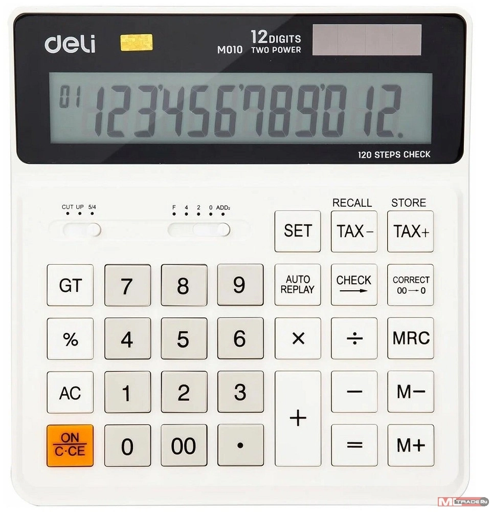 Калькулятор бухгалтерский Deli EM01010 белый 12-разр. (продается кратно 20 шт.)