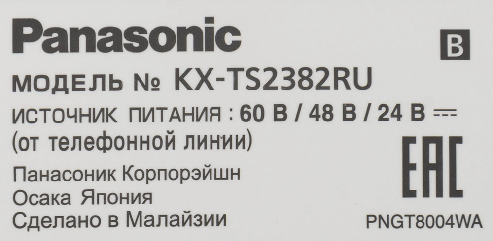 Телефон Panasonic KX-TS2382RUB (черный) (индикатор вызова,повторный набор последнего номера,4 уровня громкости звонка)