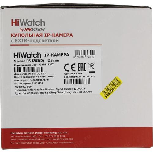 Видеонаблюдение HIWATCH DS-I203(E)(2.8mm), Камера видеонаблюдения IP 1080p, 2.8 мм, белый