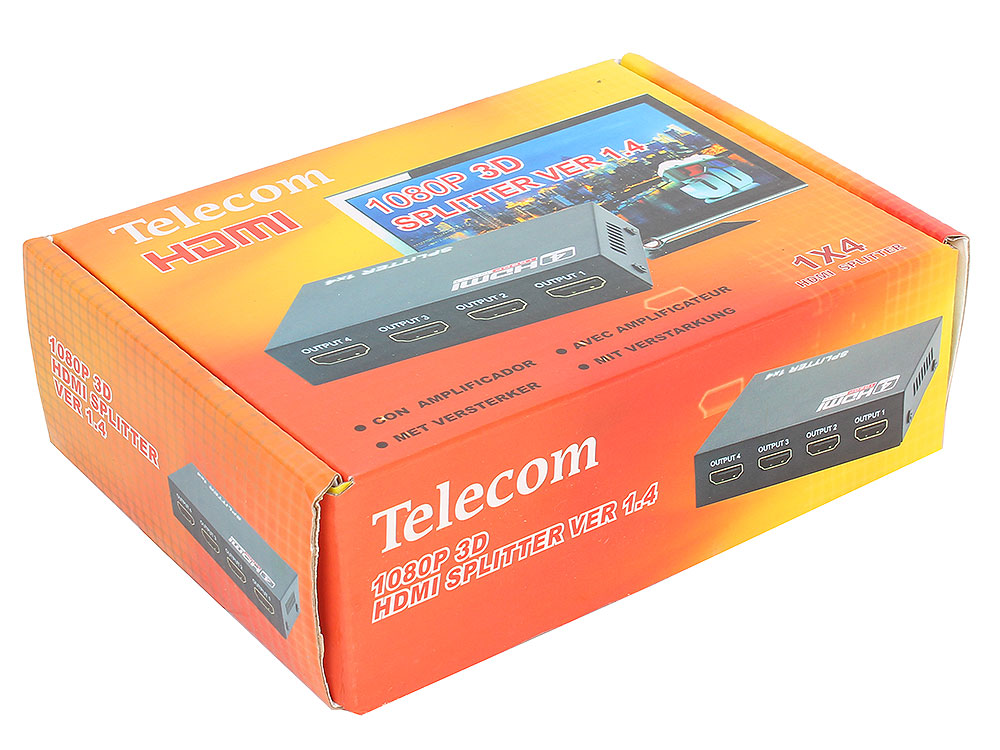 Переходник Telecom TTS5020 Разветвитель HDMI 1=>4 , каскадируемый , 1.4v+3D Telecom <TTS5020>