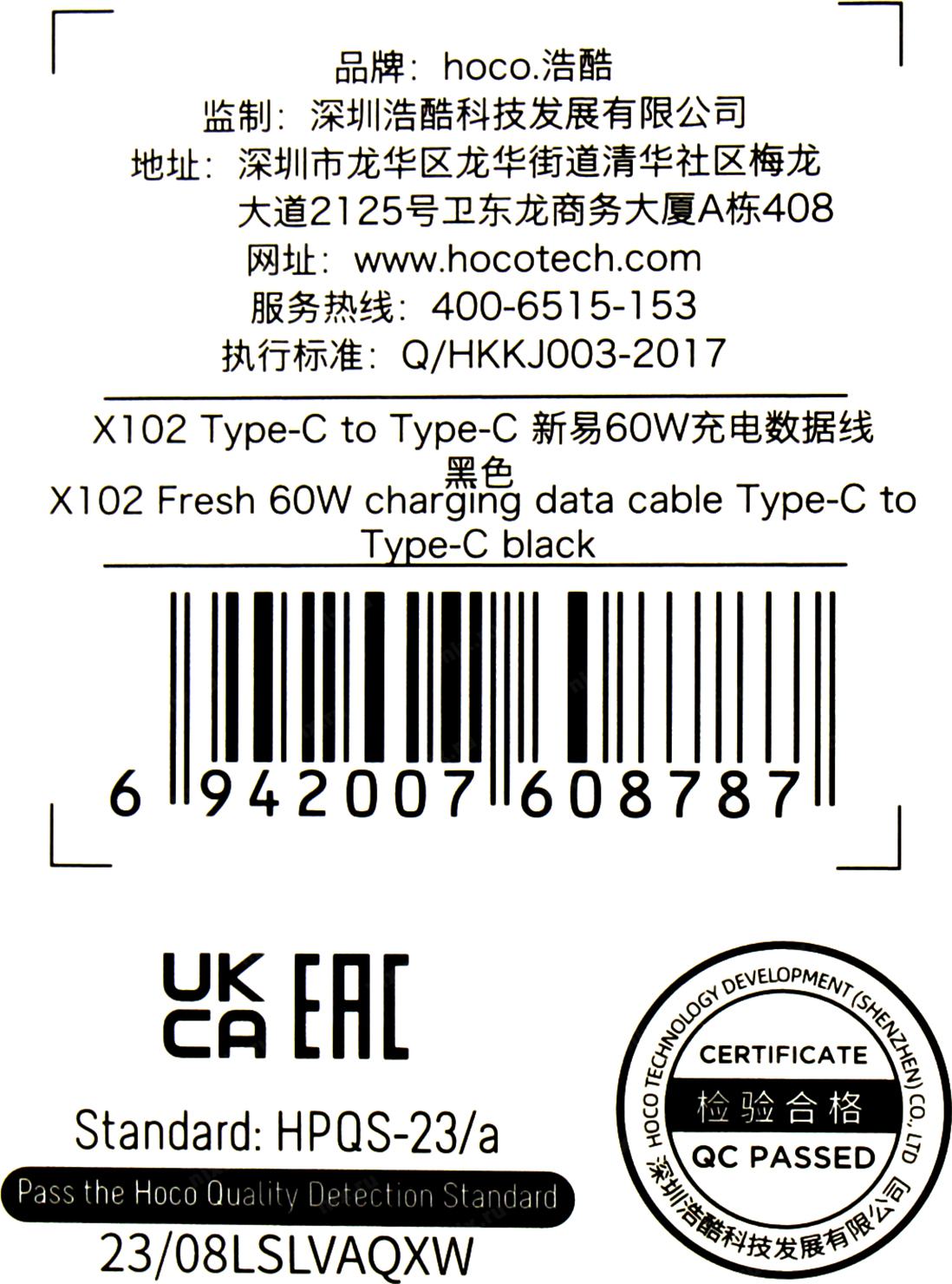 Кабель Hoco X102 Fresh Type-C to Type-C USB Type-C (m)-USB Type-C (m) 1м черный коробка