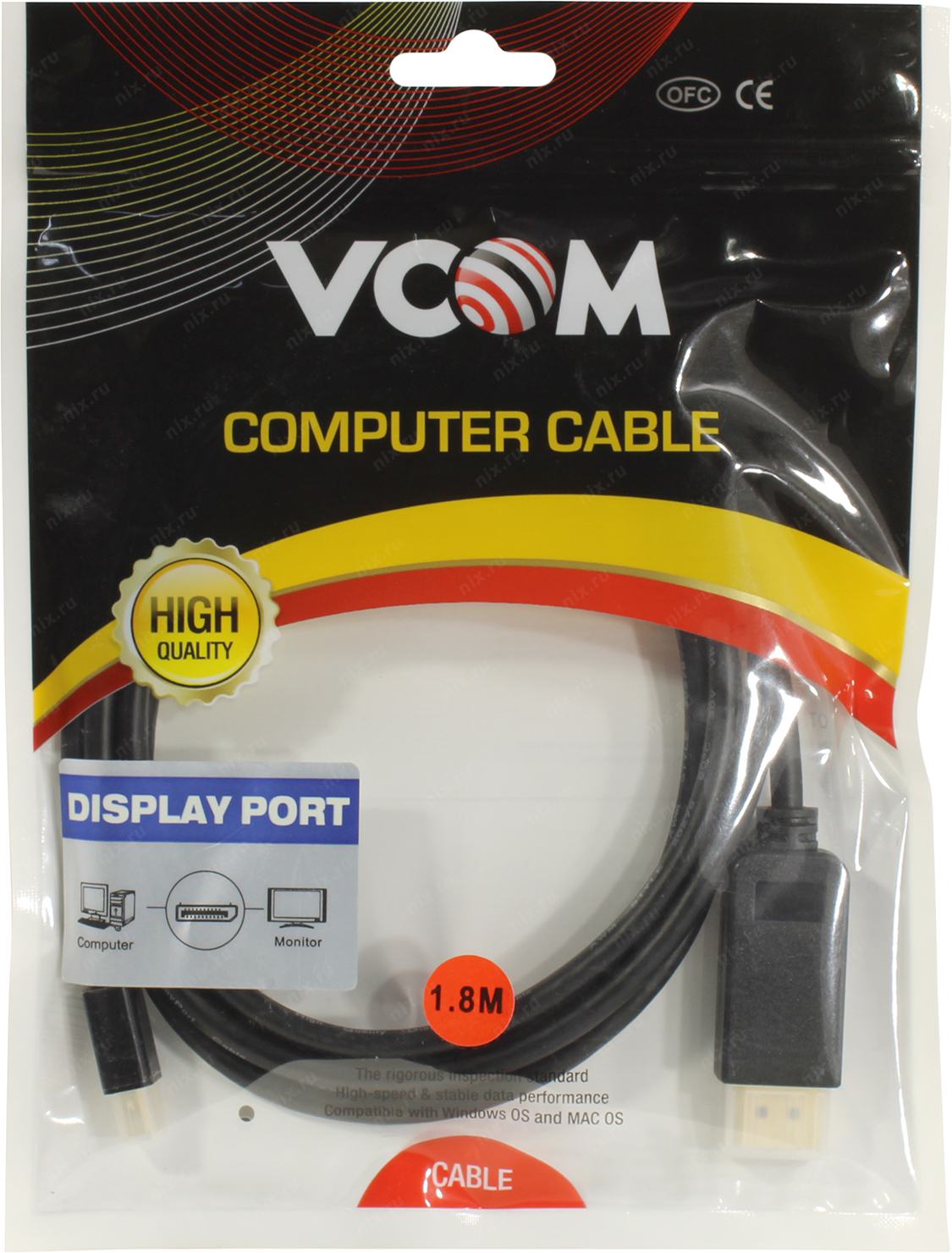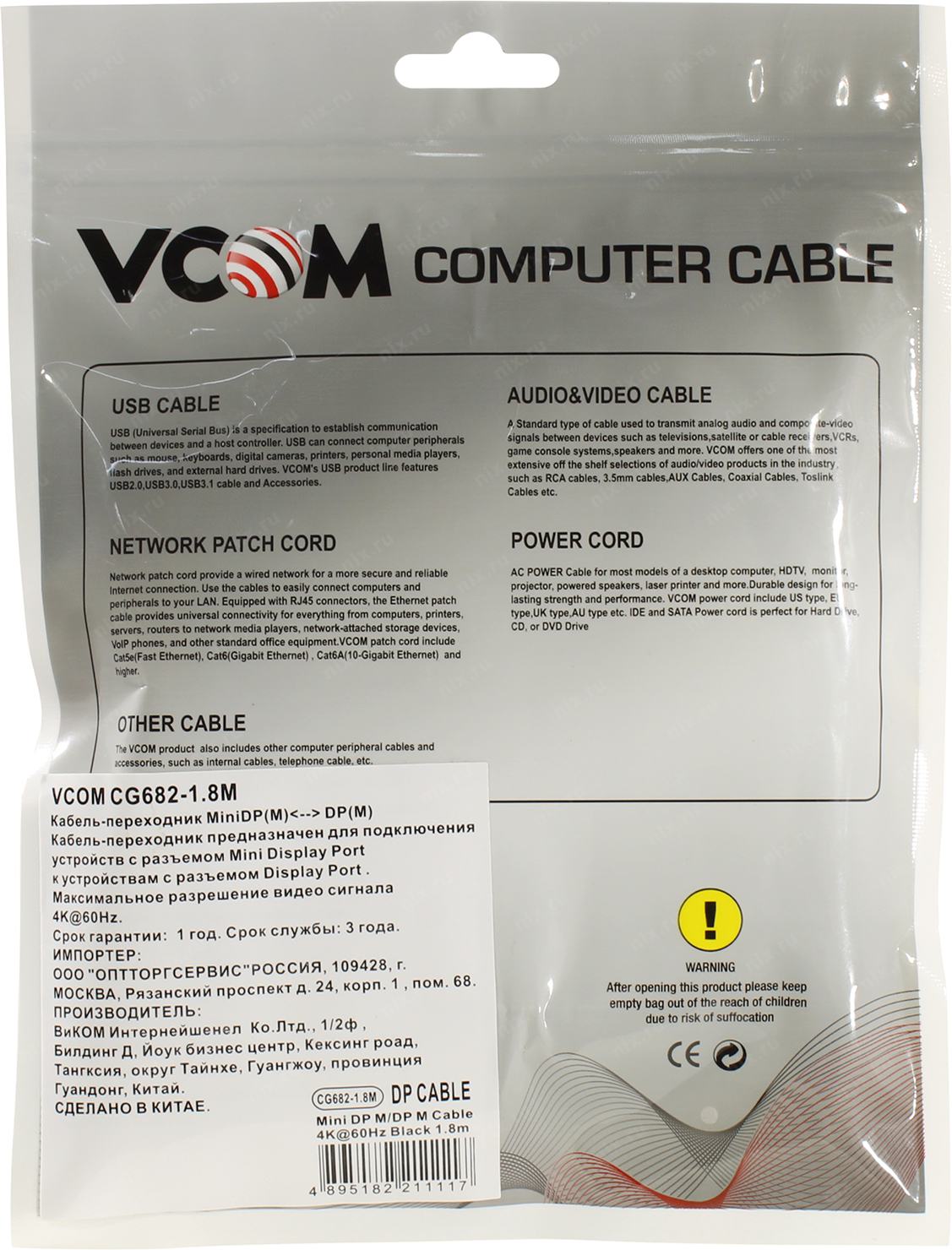 Кабели VCOM CG682-1.8M Кабель-переходник Mini DisplayPort M -> Display Port M 4K*60 Hz 1,8м VCOM <CG682-1.8M>[4895182211117]