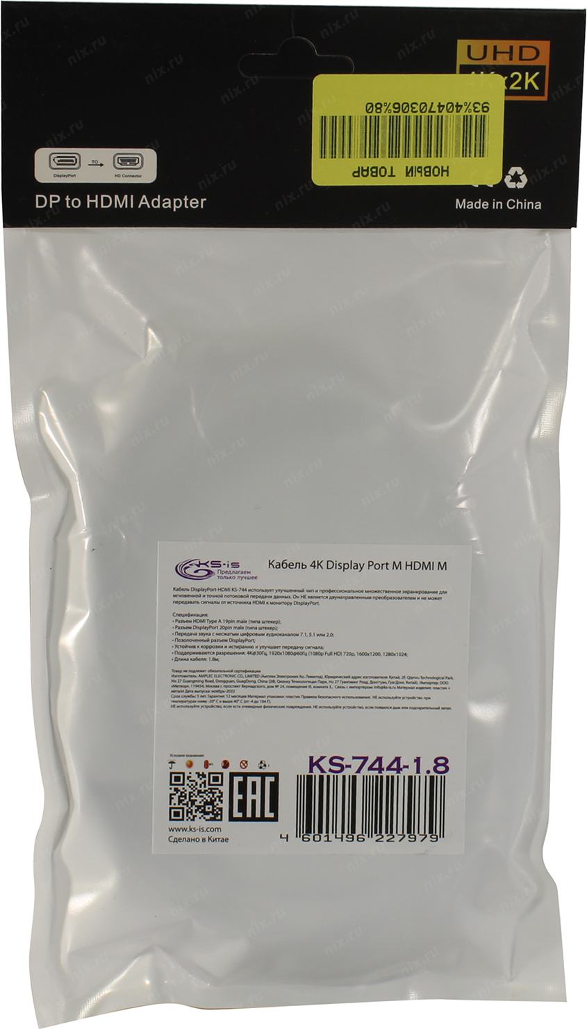 Переходной кабель KS-744 DisplayPort-HDMI имеет гибкую конструкцию с микросхемой адаптера, встроенной в разъем HDMI, что уменьшает беспорядок и обеспечивает аккуратную установку в офисе или дома.;;Кабель DP-HDMI KS-is KS-744 оснащен разъемом DP с защелкой для предотвращения случайного отключения от порта DP хоста. Чипсет, встроенный в разъем HDMI, минимизирует потери сигнала, обеспечивая кристально чистое изображение.