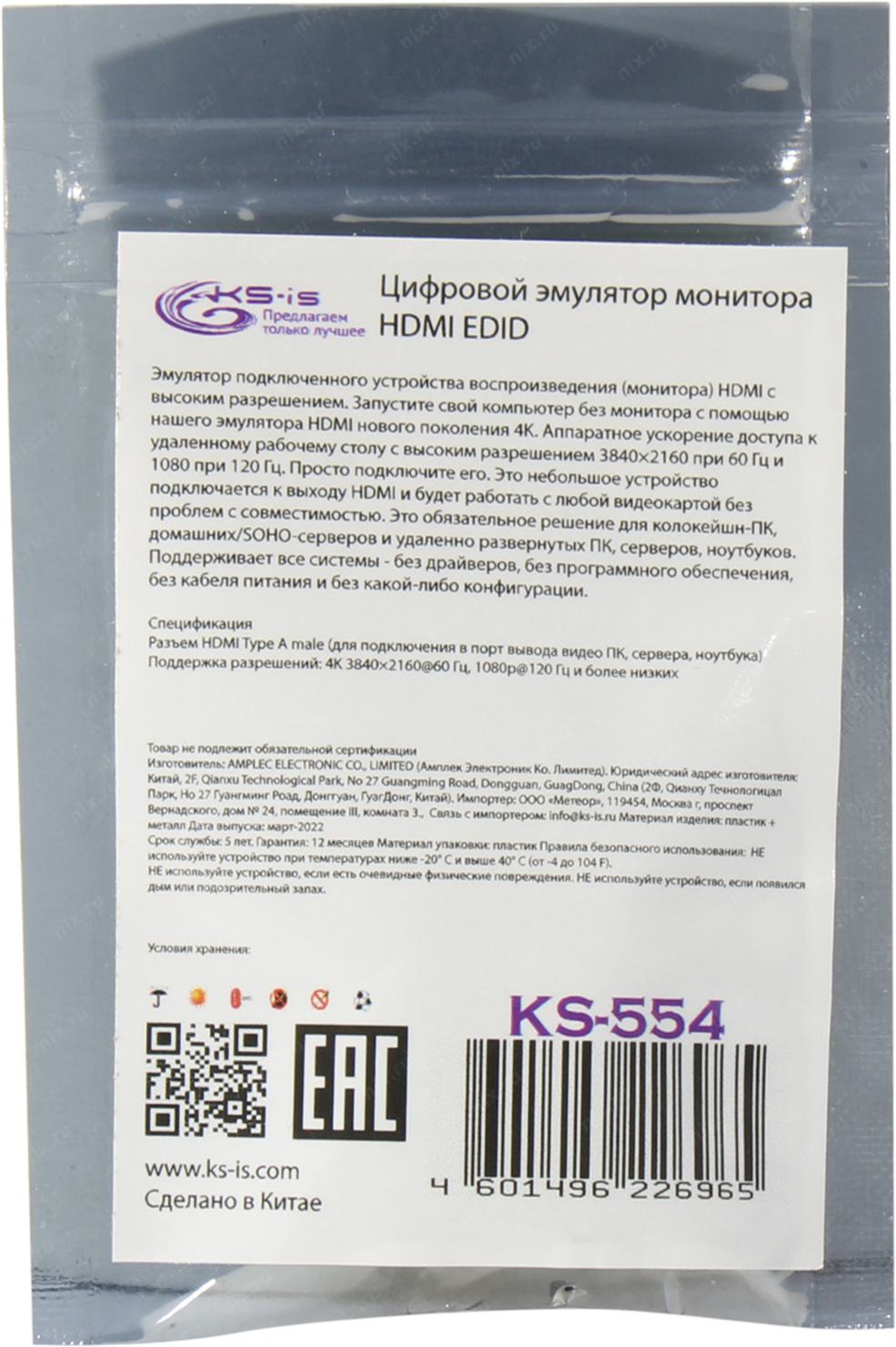 Переходник KS-is KS-554 Адаптер цифровой эмулятор монитора HDMI EDID