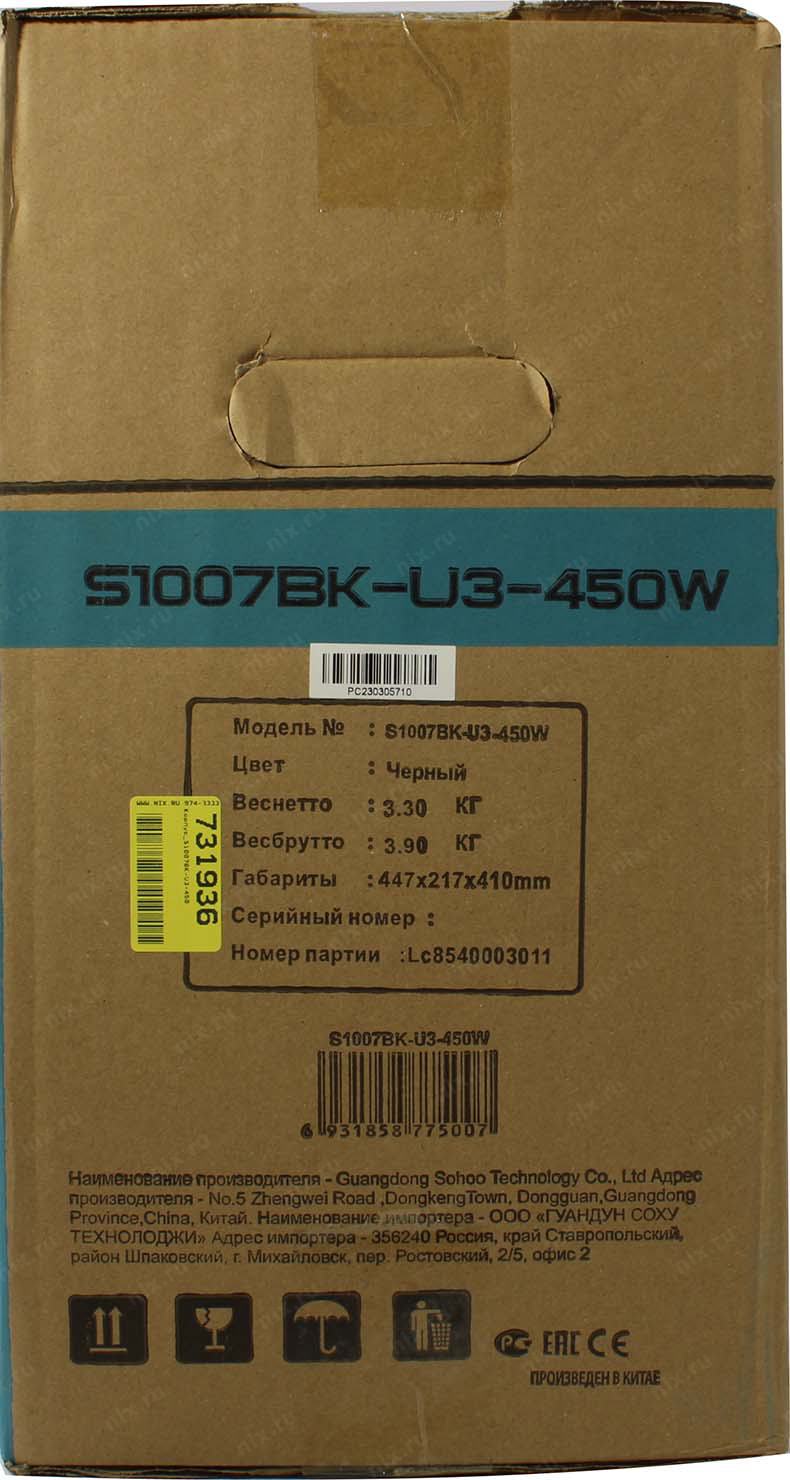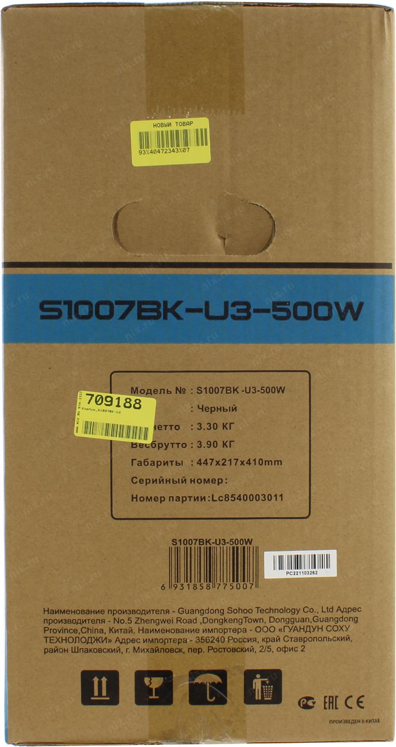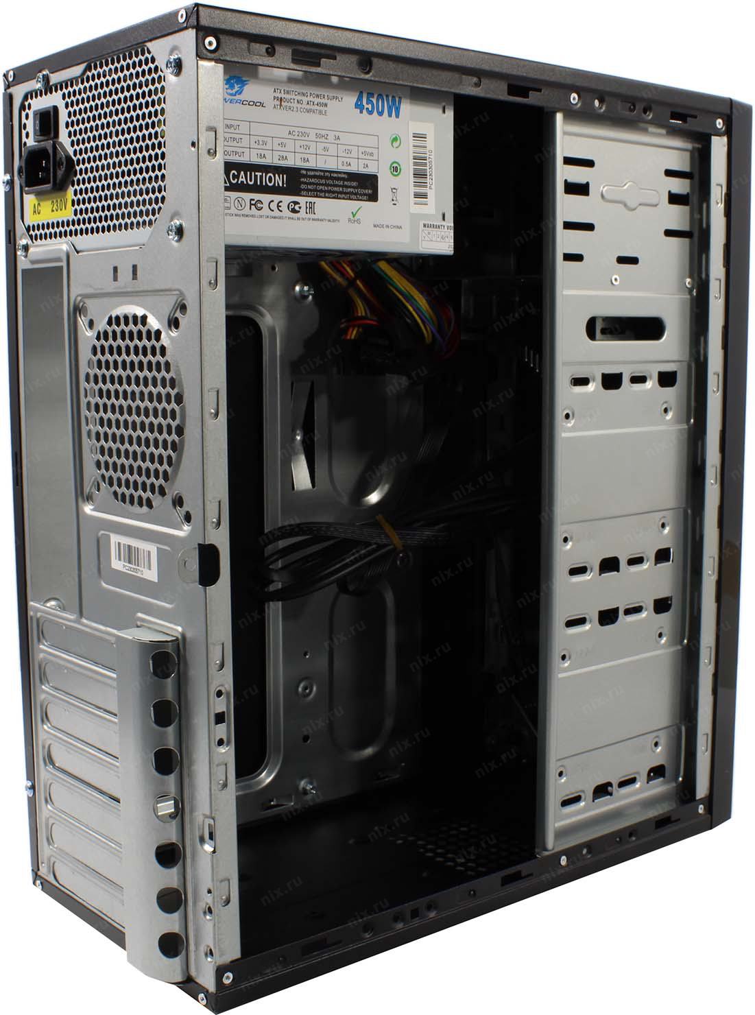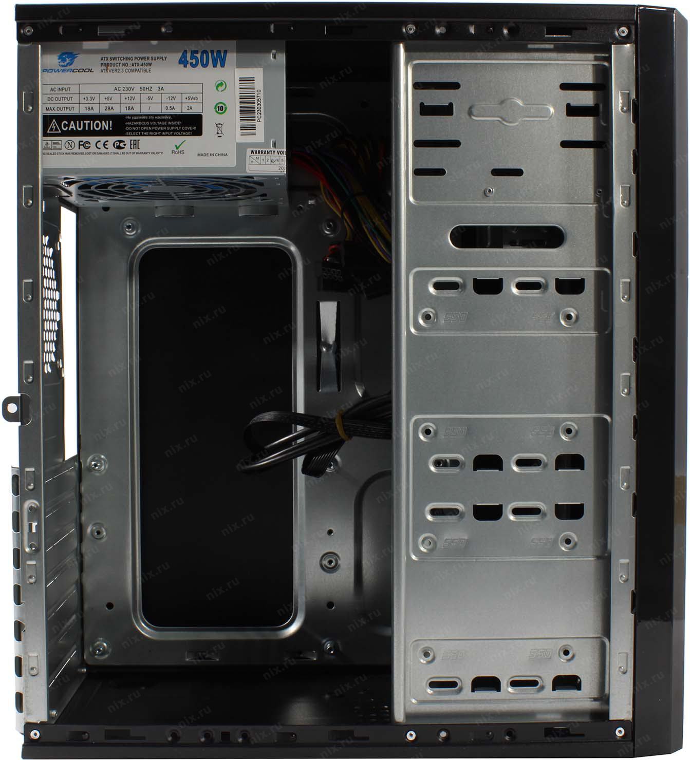 Корпус PowerCool S1007BK U3 450W (Тип: Midi-Tower, цвет: черный, форм-фактор: ATX, mATX, блок питания: 450 Вт, вентилятор: 120 мм, размеры: 175 x 407 x 362 мм, дополнительно: USB3.0 x2, наушники, микрофон) [S1007BK-U3-450W]
