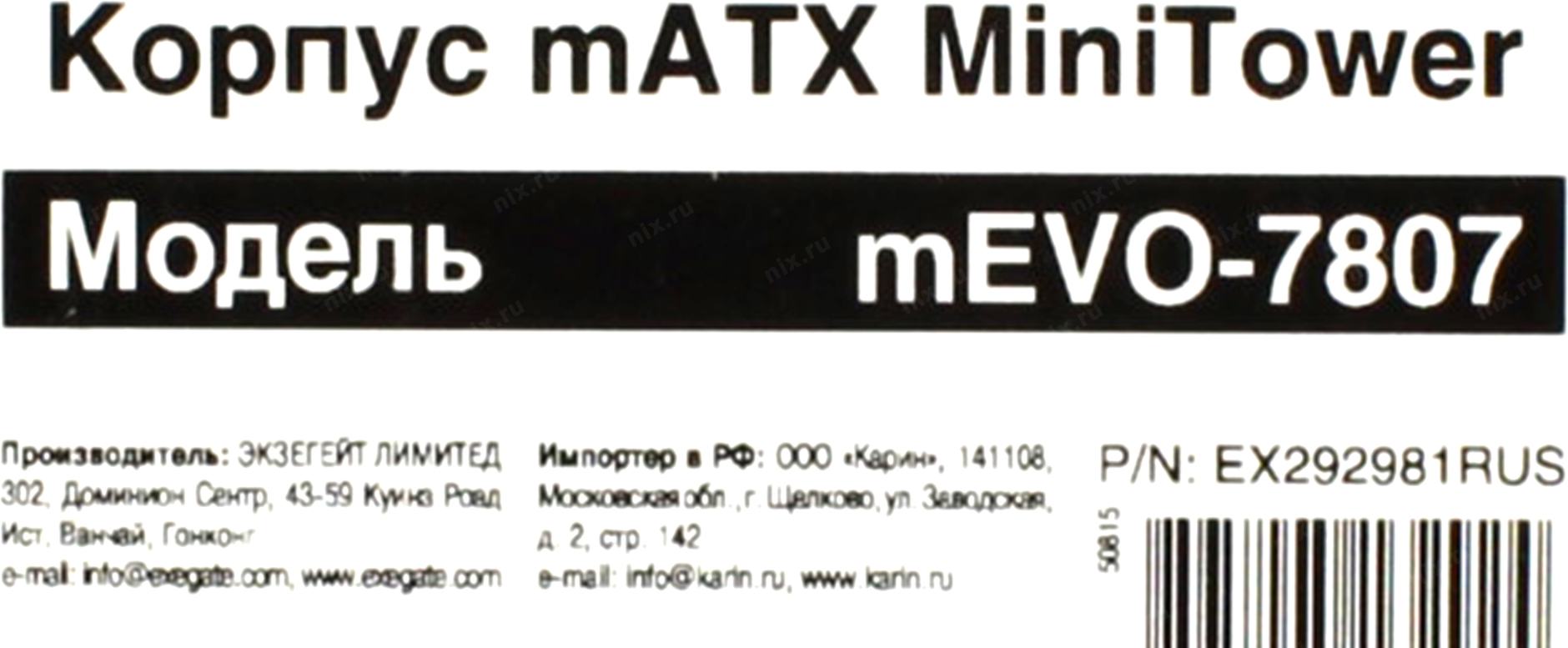 Корпус MINITOWER mATX W/PSU USB+USB3.0 черный 120mm Fan с RGB подсветкой mEVO-7807 EX292981RUS EXEGATE