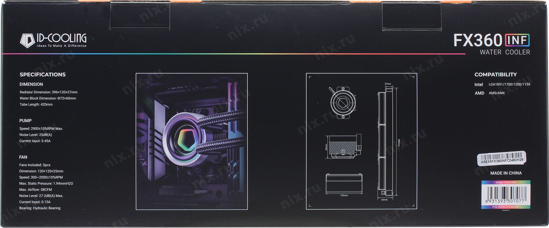 Система водяного охлаждения ID-Cooling FX360 Inf ARGB Soc-AM5/AM4/1200/1700/1851 черный 4-pin 27.2dB Al 350W Ret
