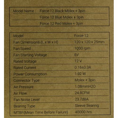 Вентилятор Fan Aerocool Force 12 / 120mm/ 3pin+4pin/ Black [Force12Black]