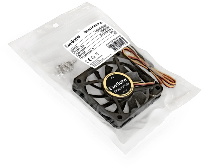 Вентиляторы Exegate EX253944RUS Вентилятор ExeGate Mirage-S 60x60x10 подшипник скольжения, 3500 RPM, 26dB, 3pin