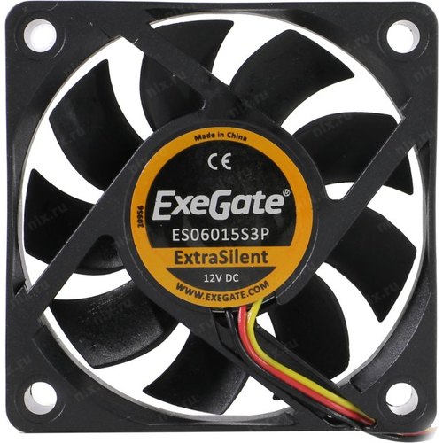 Вентиляторы Exegate EX283369RUS Вентилятор ExeGate ExtraSilent ES06015S3P, 60x60x15 мм, подшипник скольжения, 3pin, 2500RPM, 22dBA