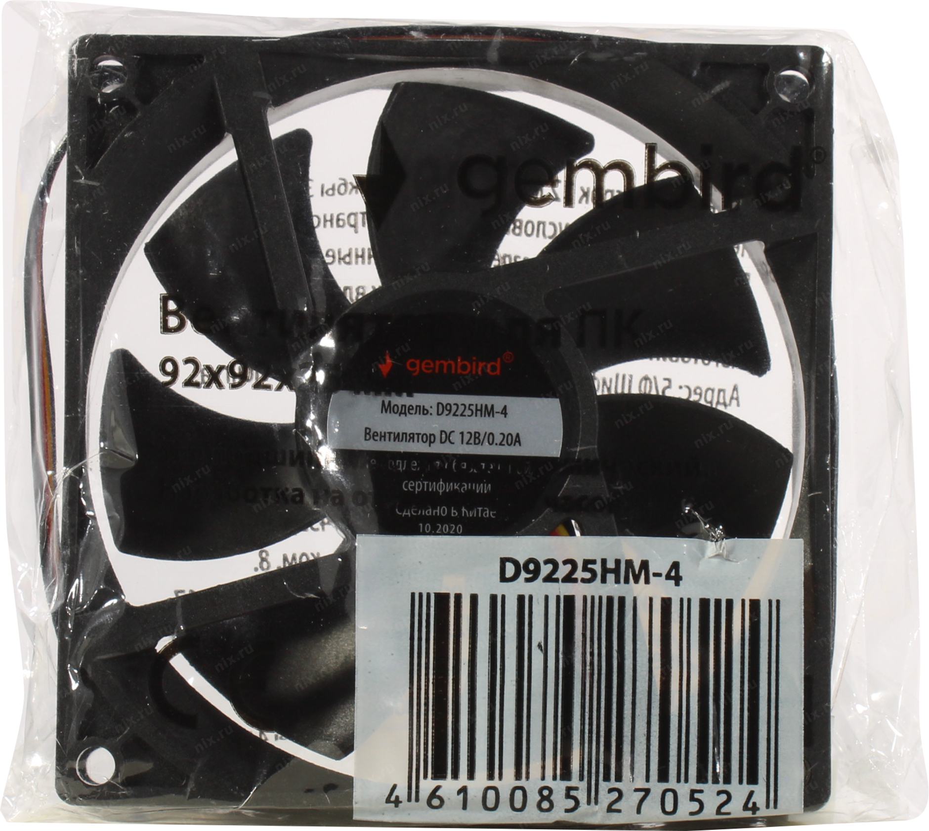 Вентилятор Gembird Вентилятор для корпуса 92x92x25, гидродинамический, 4 pin, провод 30 см (D9225HM-4)