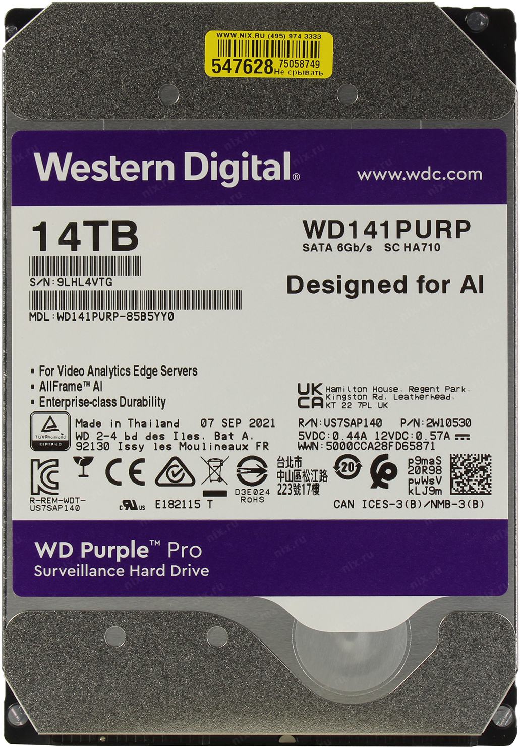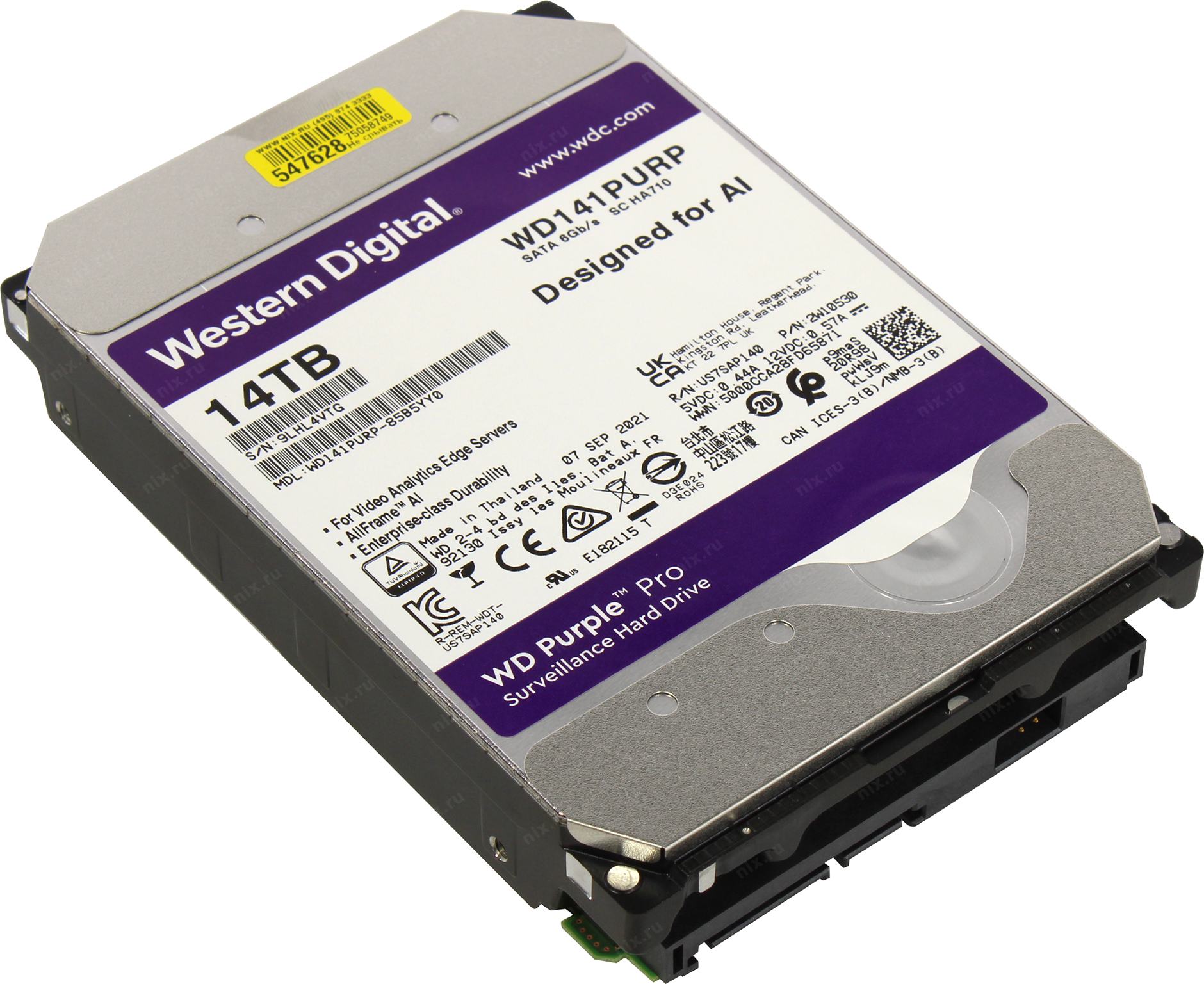 Жесткий диск SATA 14TB 6GB/S 512MB PURPLE WD141PURP WDC