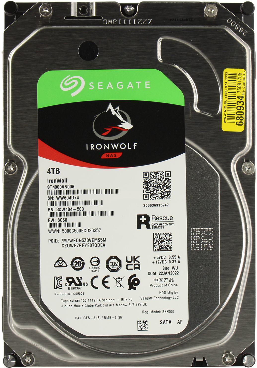 Жесткий диск 4TB Seagate Ironwolf (ST4000VN006) (SATA 6.0Gb/s, 5400 rpm, 256mb buffer, 3.5", для NAS)