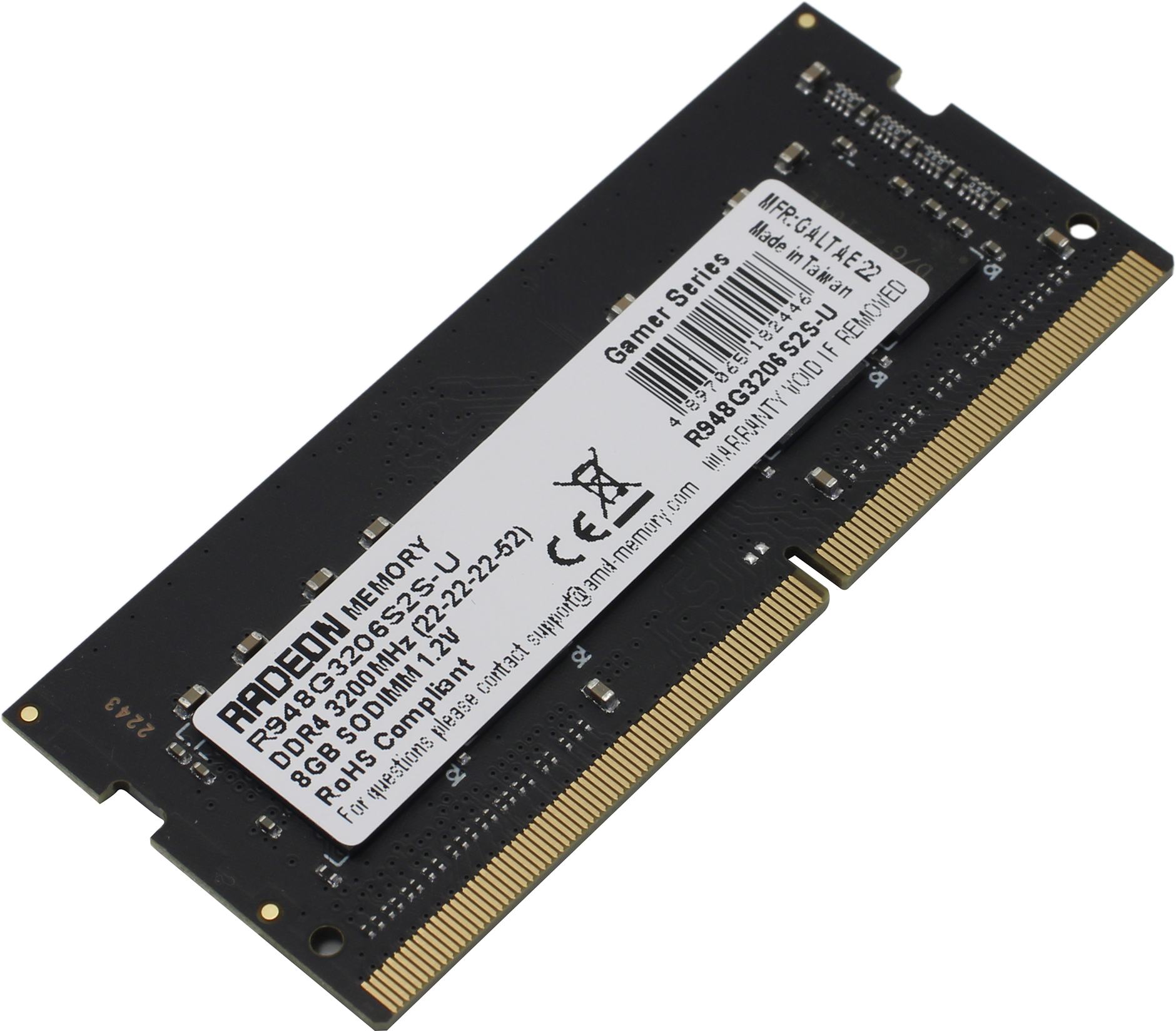 Модуль памяти AMD Radeon R9 Gamers Series Black Gaming Memory R948G3206S2S-U 8GB DDR4 3200 SO DIMM Non-ECC, CL16, 1.2V, RTL (182446) (100)