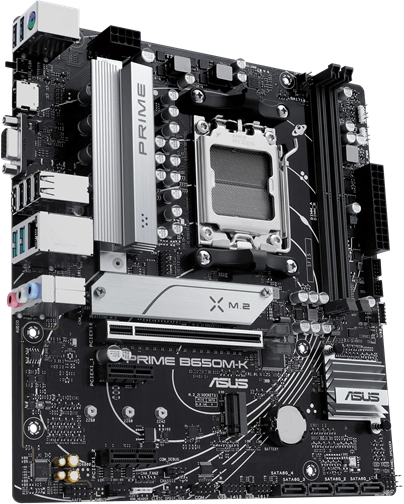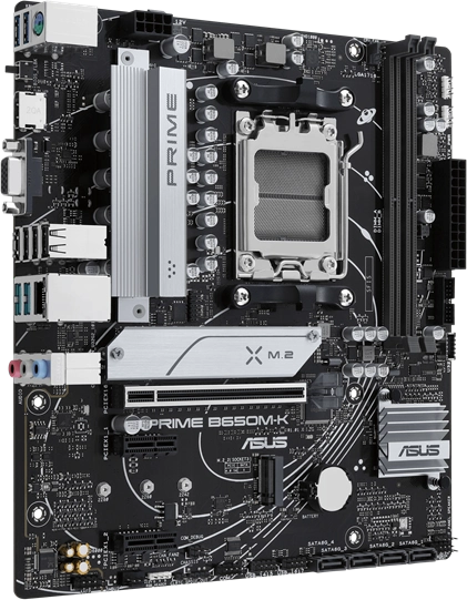 Материнская плата ASUS PRIME B650M-K (Socket AM5, mATX, 2xDDR5(96GB), VGA/HDMI 2.1, 1xPCIe 4.0x16/2xPCIe 4.0, 1xLAN (2.5GbE), 4xSATA 6Gb/s, 2xM.2, 4xUSB 3.2, 4xUSB 2.0, 1xPS/2) [PRIMEB650M-K]