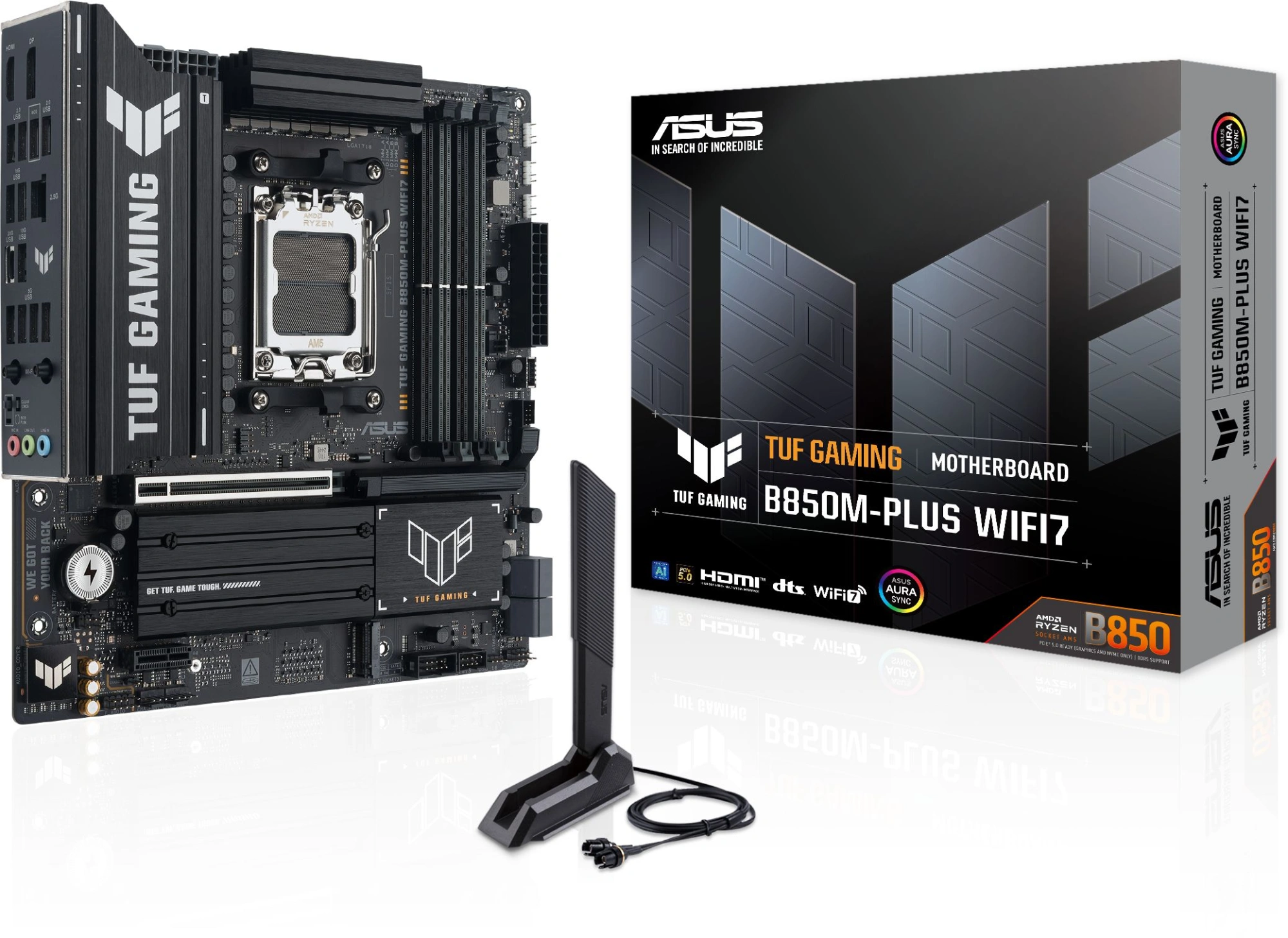 Материнская плата ASUS TUF GAMING B850M-PLUS WIFI7 (Socket AM5, mATX, 4xDDR5(256GB), DP/HDMI, 1xPCIe 5.0x16/1xPCIe 4.0x16/1xPCIe 4.0x1, 1xLAN (2.5GbE), Wi-Fi, BT, 4xSATA 6Gb/s, 3xM.2, 1xType-C, 7xUSB 3.2, 4xUSB 2.0) [TUFGAMINGB850M-PLUSWIFI7]