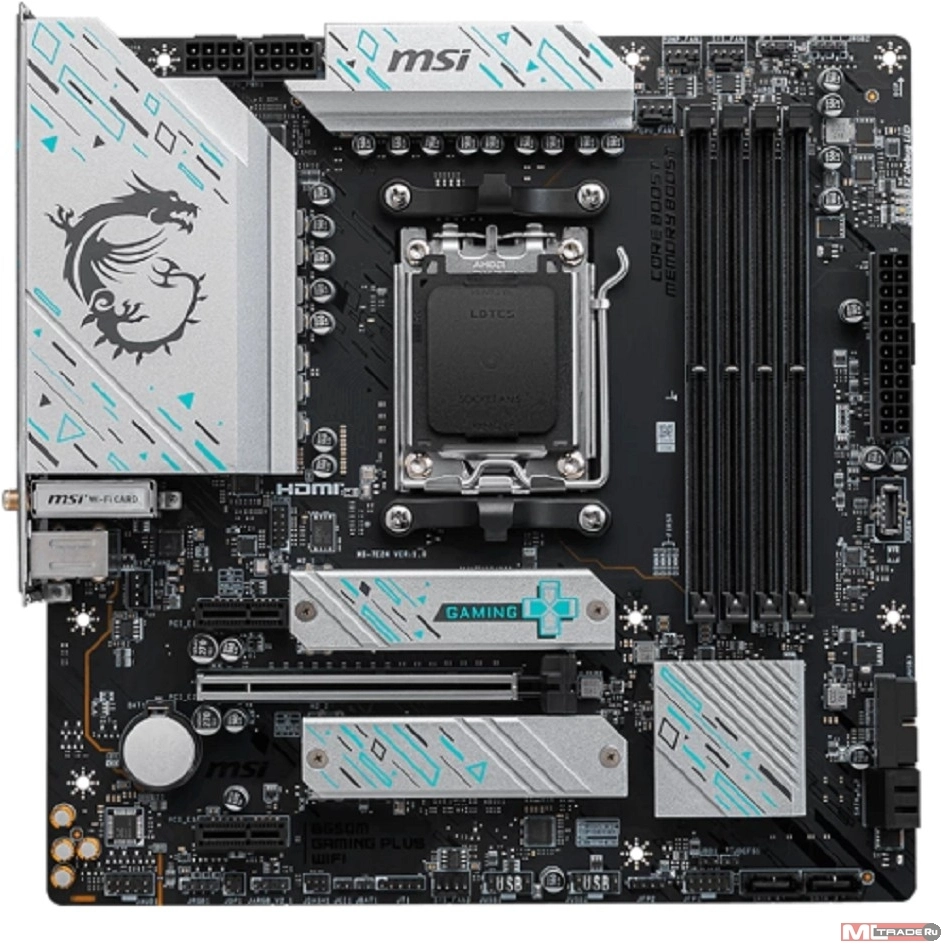 Материнская плата MSI B650M GAMING PLUS WIFI B650, AM5, 4*DDR5, 1*PCIEx16, 2*PCIEx1, 2*M.2, 2*TypeC, 3*USB3.2Gen2, 6*USB3.2Gen1, 4*USB2.0, 4*SATA3.0, 2.5G, DP, HDMI, M-ATX, RTL