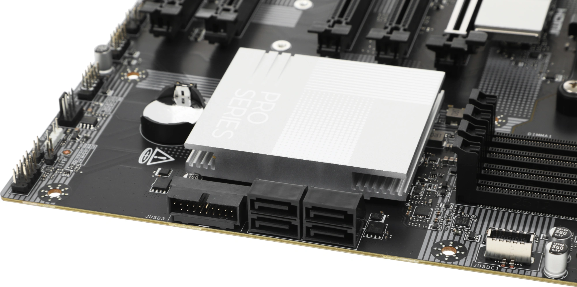 2 разъема M Key PCI-E 4.0 x4 с поддержкой карт Type 2260/2280/22110 (длиной до 110 мм).