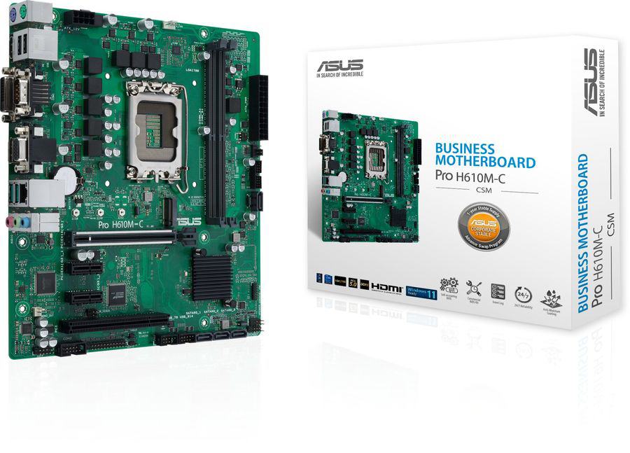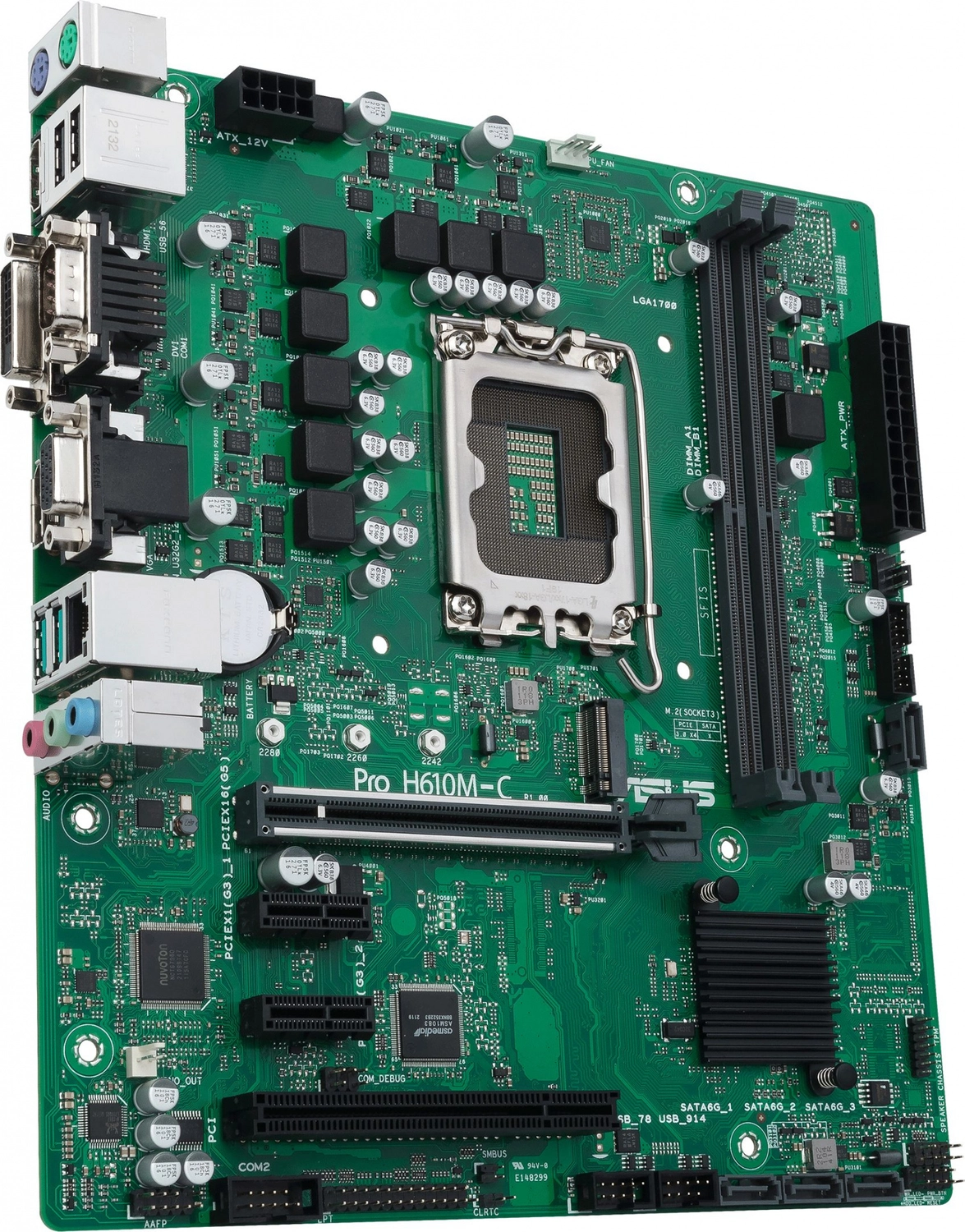 Материнская плата ASUS PRO H610M-C-CSM (Socket 1700, mATX, 2xDDR5(64GB), DP/DVI/HDMI, 1xPCIe 5.0x16/2xPCIe 3.0x1, 4xSATA 6Gb/s, 1xM2, 1xLAN, 1xCom, 2xUSB 3.0, 2xUSB 2.0, 2xPS/2) [PROH610M-C-CSM]