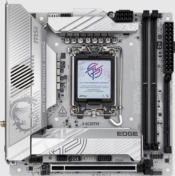 Материнская плата MSI MPG Z890I EDGE TI WIFI Soc-1851 Intel Z890 2xDDR5 mini-ITX AC`97 8ch(7.1) 5Gigabit RAID+HDMI