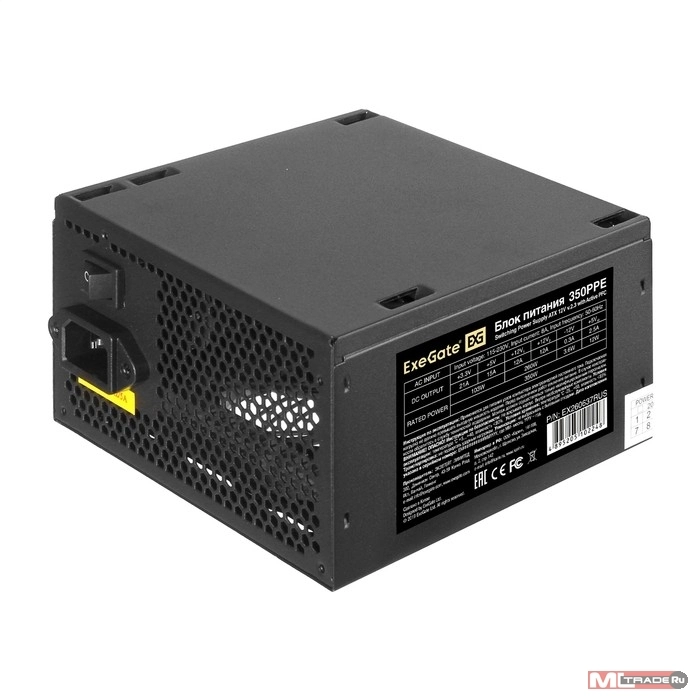 Блок питания Exegate EX260637RUS Блок питания 350W Exegate 350PPE, ATX, black, APFC, 12cm, 24p+4p, PCI-E, 5*SATA, 3*IDE, FDD