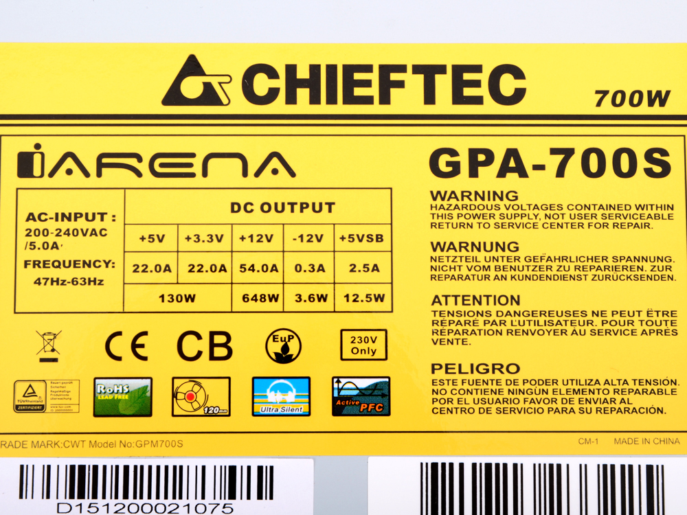 Блок питания Chieftec ATX 700W iArena GPA-700S 24pin APFC 120mm fan 6xSATA
