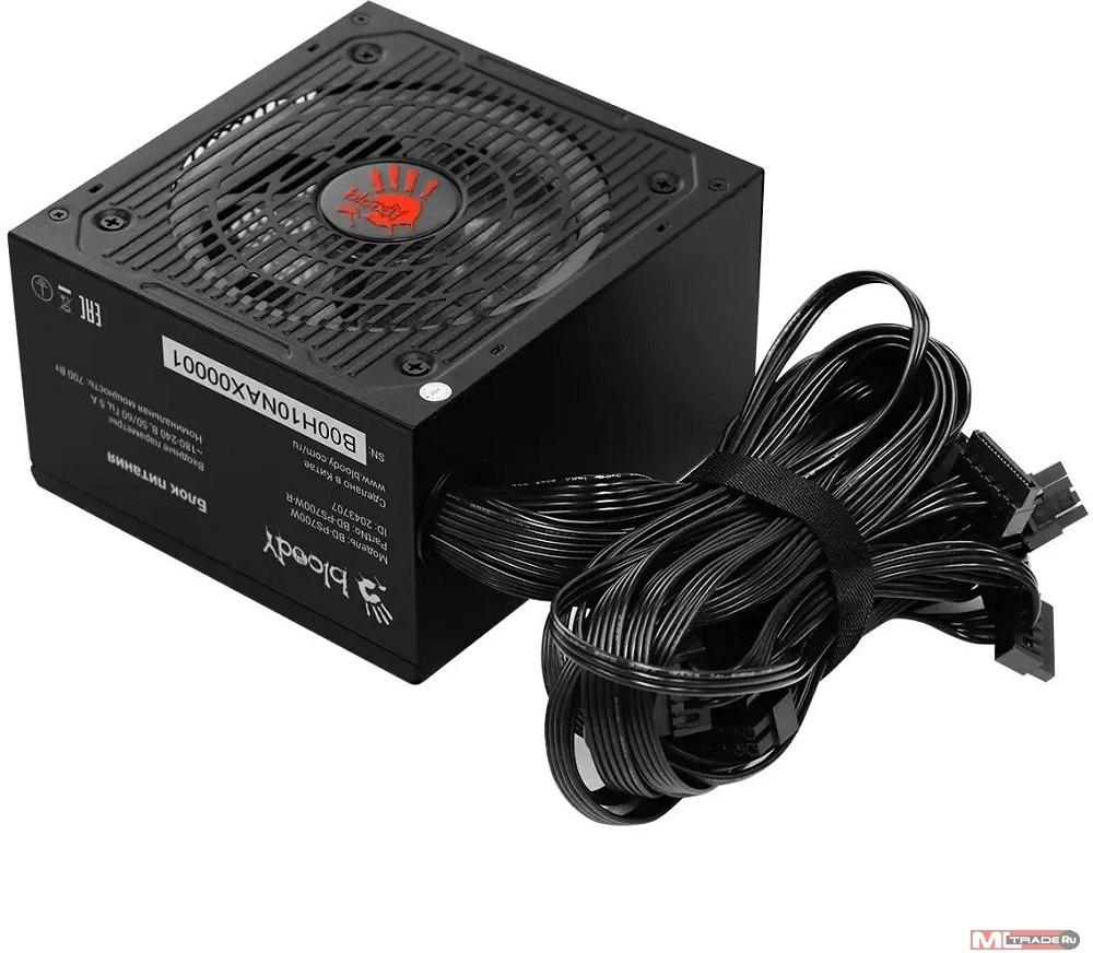 Блок питания Bloody ATX 700W BD-PS700W 80 PLUS WHITE (20+4pin) APFC 120mm fan color LED 6xSATA RTL BD-PS700W-R