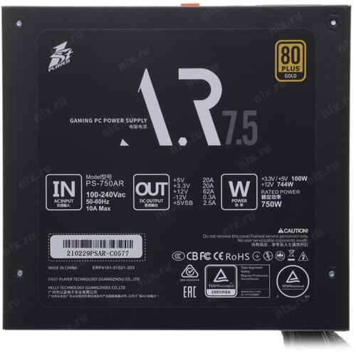 Блок питания 1STPLAYER Блок питания AR 750W / ATX 2.4, LLC+DC-DC, APFC, 80 PLUS GOLD, 120mm fan / PS-750AR