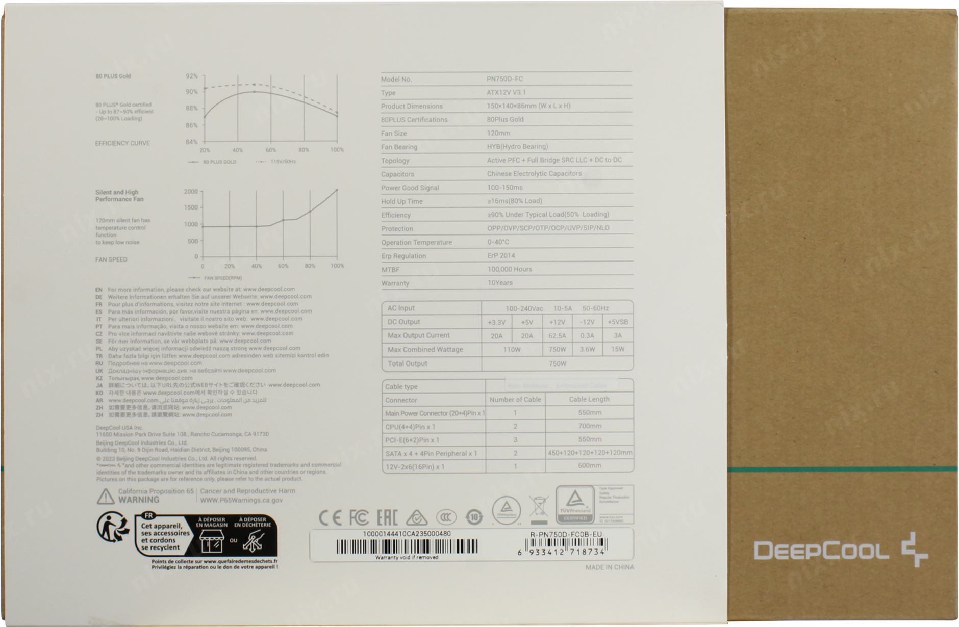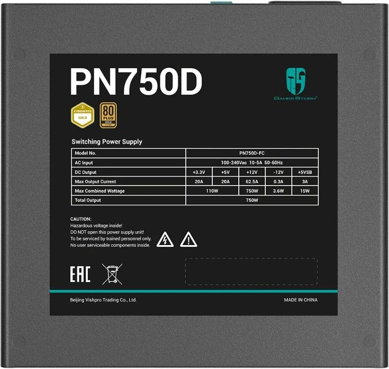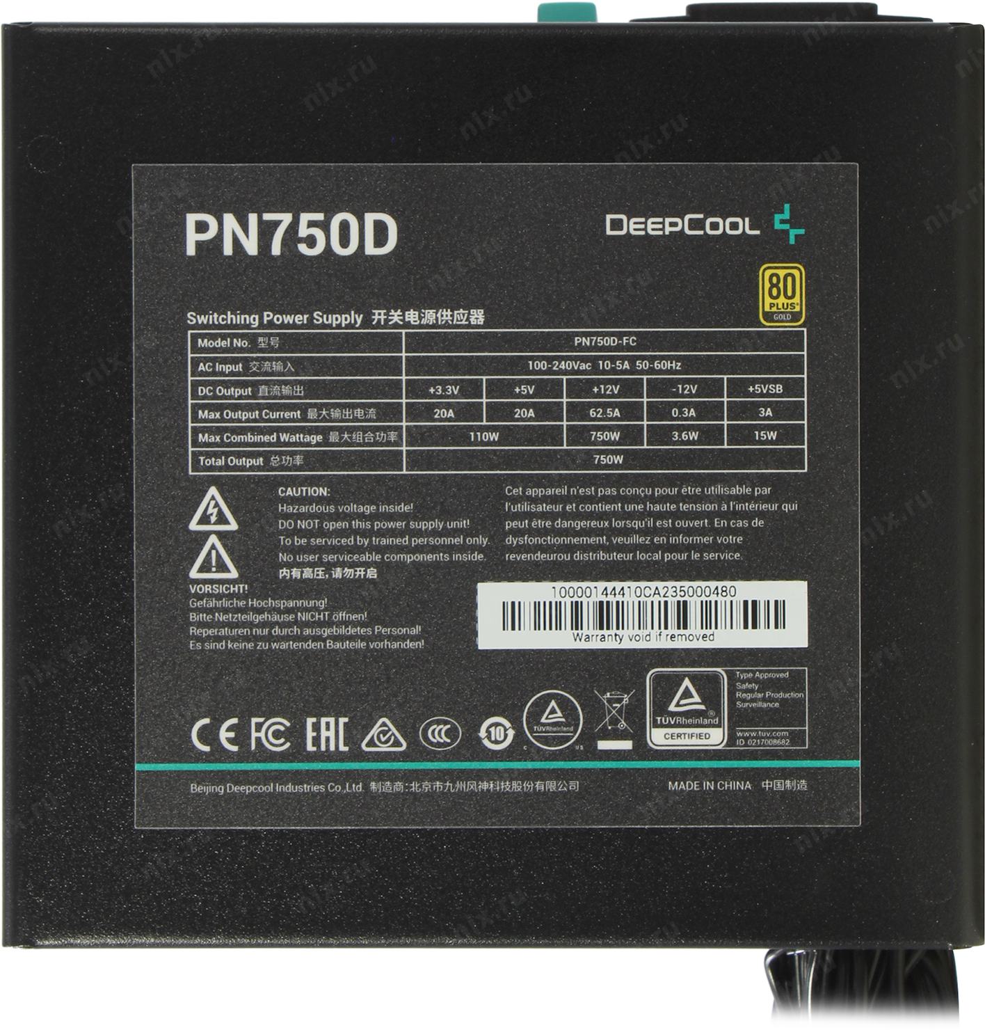 Блок питания Deepcool GAMERSTORM PN750D (ATX 3.1, 750W, PWM 120mm fan, Active PFC, 80+ GOLD, Gen5 PCIe) RET (R-PN750D-FC0B-WGEU-V2) <GS PN750D>