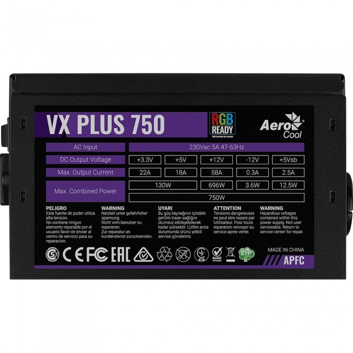 Блок питания Aerocool/Formula VX-750 PLUS APFC (RTL) 750W ATX (24+2x4+2x6/8пин)