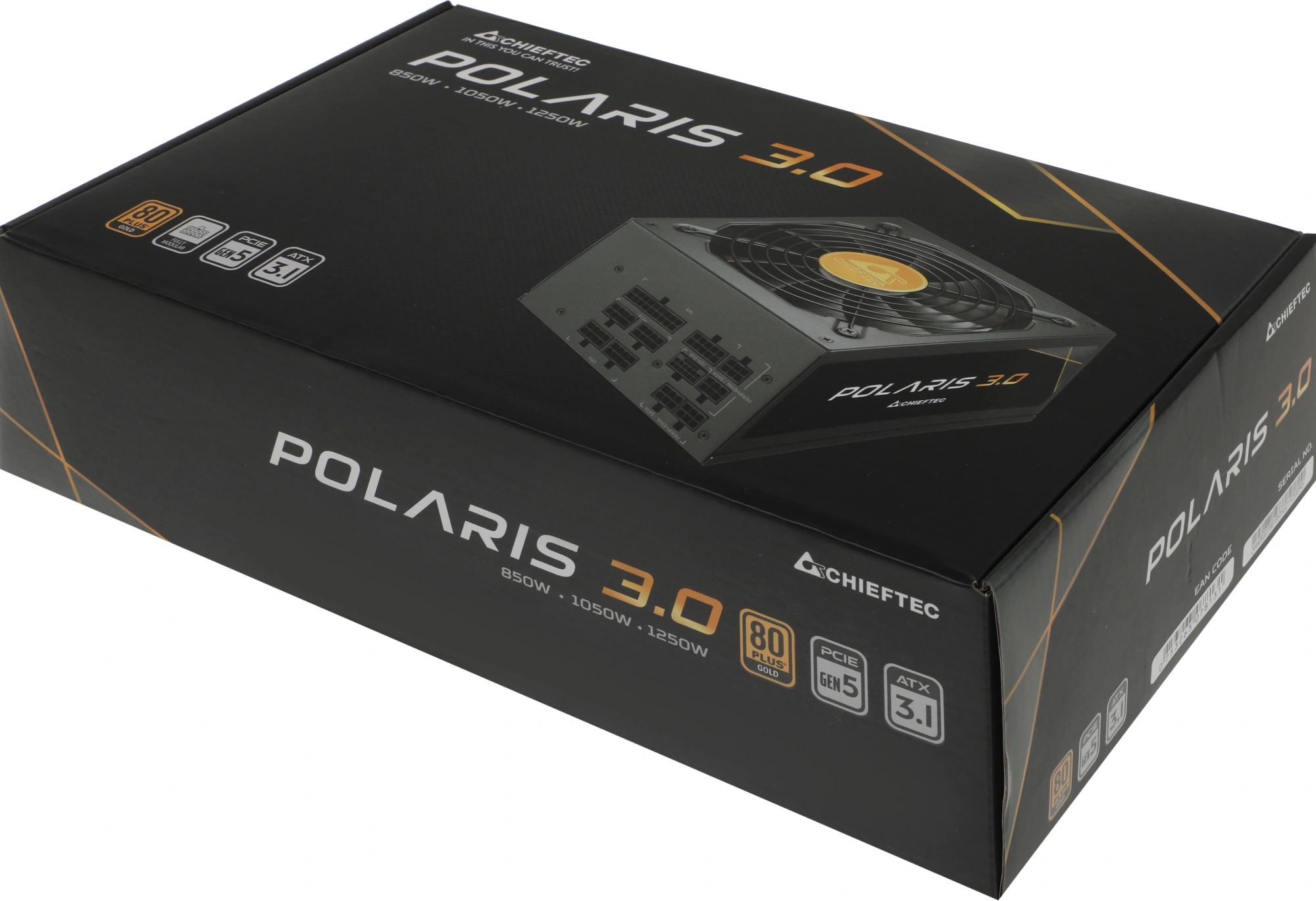 Блок питания Chieftec Polaris 3.0 PPS-850FC-A3 (ATX 3.0, 850W, 80 PLUS GOLD, Active PFC, 140mm fan, Full Cable Management, Gen5 PCIe) Retail