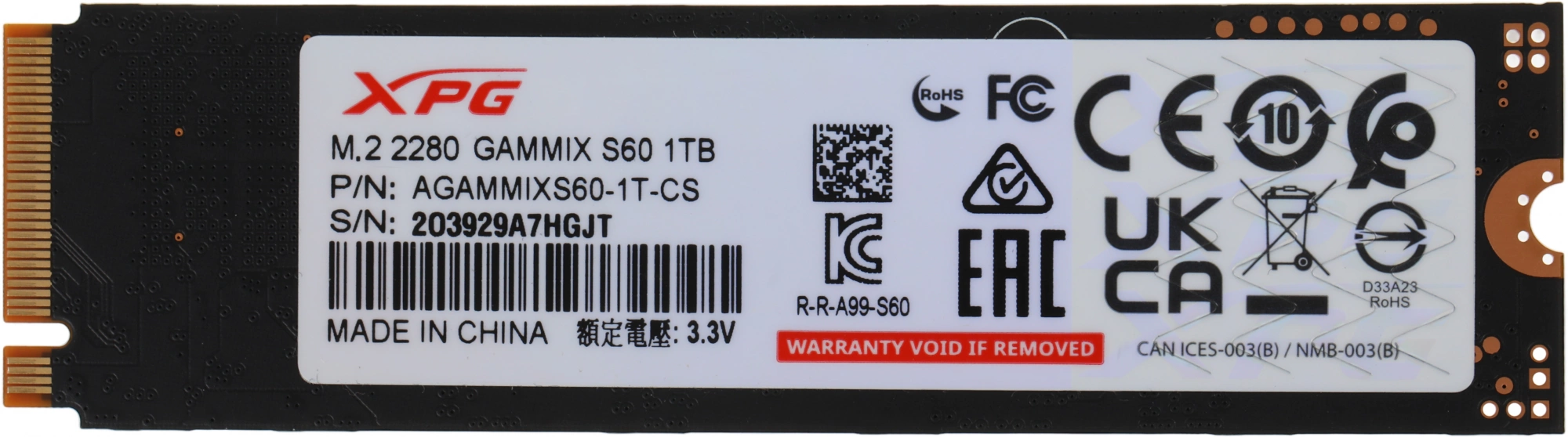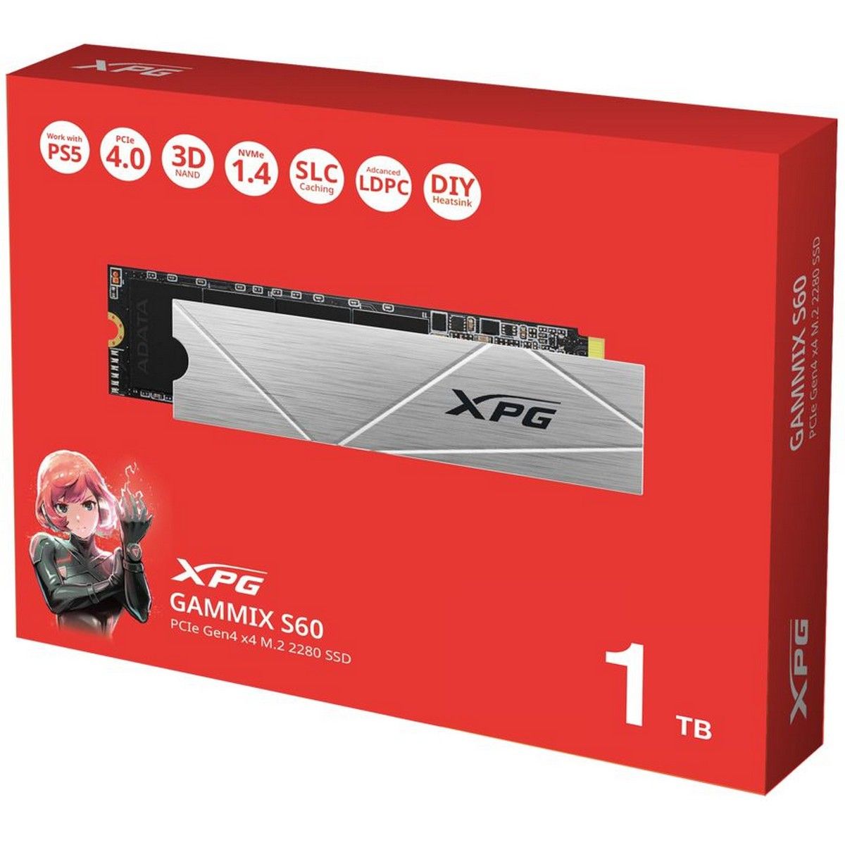 Накопитель A-DATA SSD 1Tb GAMMIX S60 BLADE,M.2(22x80mm), NVMe, PCIe 4.0 x4, 3D NAND, AGAMMIXS60-1T-CS